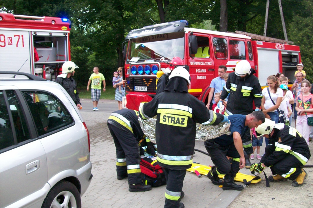 Czterdziestoosobowa grupa pielgrzymów z Austrii przebywająca na terenie parafii Łukowica, w niedzielne popołudnie wspólnie z polską młodzieżą brała udział w "Święcie Rodziny" w Łukowicy. Z tej okazji dwie jednostki OSP z naszej gminy - OSP Łukowica i OSP Świdnik, aby urozmaicić lokalne uroczystość związane z przygotowaniami do ŚDM, zaprezentowały pokaz ratownictwa ukierunkowany na wydobywanie osób poszkodowanych z samochodów. Krótki pokaz obejmował zaledwie jeden z obszarów z jakimi na co dzień mierzy się straż pożarna, ale mając na uwadze okoliczności miał on przede wszystkim wymiar integracyjny i promocyjny.