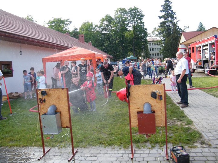 Po wlaniu odpowiedniej ilości wody, zapalała się lampka sygnalizacyjna i rozlegał się sygnał akustyczny - syrena! Nad zaopatrzeniem wodnym z prądownicą w ręku czuwał dh Andrzej Kożuch. Rywalizacja ta spotkała się z bardzo dużym zainteresowaniem wśród zgromadzonych dzieci, które wczuwały się w pracę strażaka ubierając do tej konkurencji hełm strażacki i bluzę OSP. Nagrodą dla dzieci za ukończoną konkurencję były słodycze wręczane przez Prezesa OSP. Nad sprawnym przebiegiem konkurencji czuwali strażacy z naszej OSP, w tym Prezes dh Józef Pietrzak oraz dh Michał Sułkowski - opiekun Młodzieżowej Drużyny Pożarniczej, a zarazem pomysłodawca zabawy.