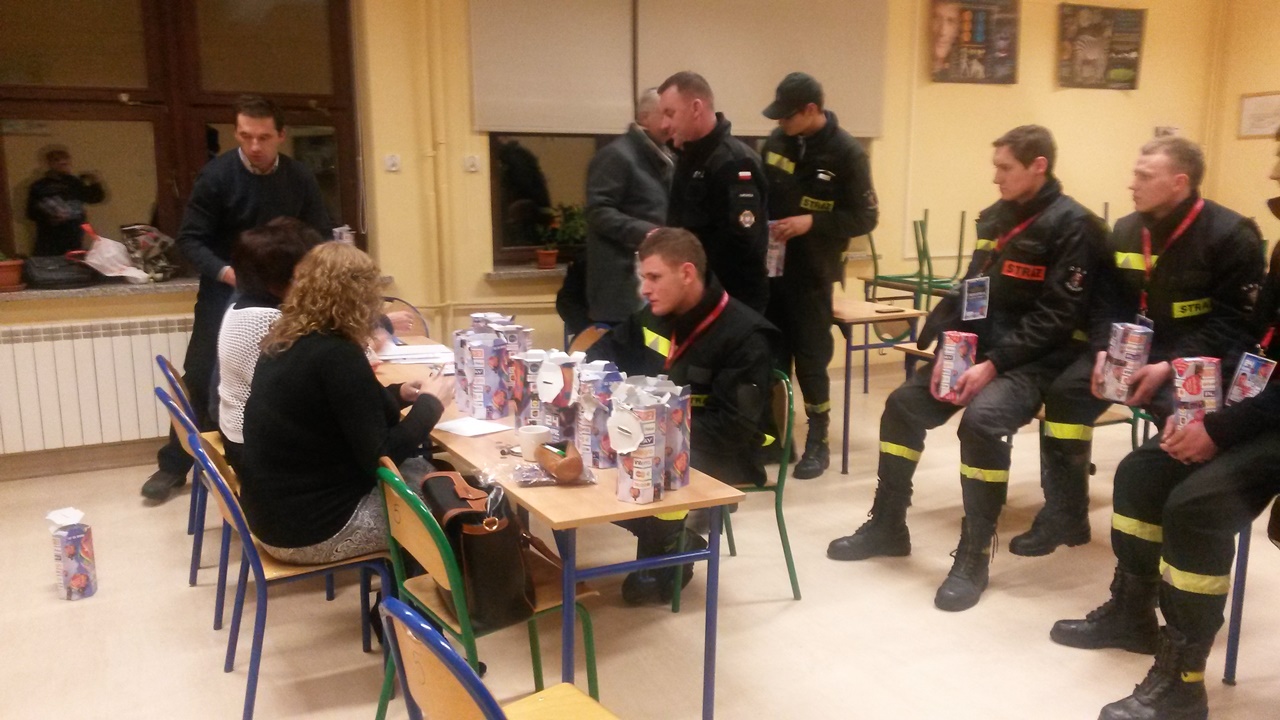 Podziękowania kierujemy również do członków zespołu HAPPYSAD, którzy przekazali koszulki i gadżety promocyjne będące nie lada atrakcją dla zebranych uczestników. Słowa uznania kierujemy również do naszych dwóch strażaków Michała i Adama Sułkowskiego, którym również składamy gorące podziękowania za zaangażowanie i udział w podjętej akcji. Organizacja i przeprowadzenie dzisiejszego wydarzenia nie byłoby możliwe gdyby nie wsparcie naszych strażaków, zarówno tych prowadzących zbiórkę – wolontariuszy WOŚP, jak i tych którzy w jakikolwiek inny sposób brali udział we w tych wydarzeniach – podziękowania kierujemy tutaj przede wszystkim na ręce Prezesa OSP Józefa Pietrzaka.