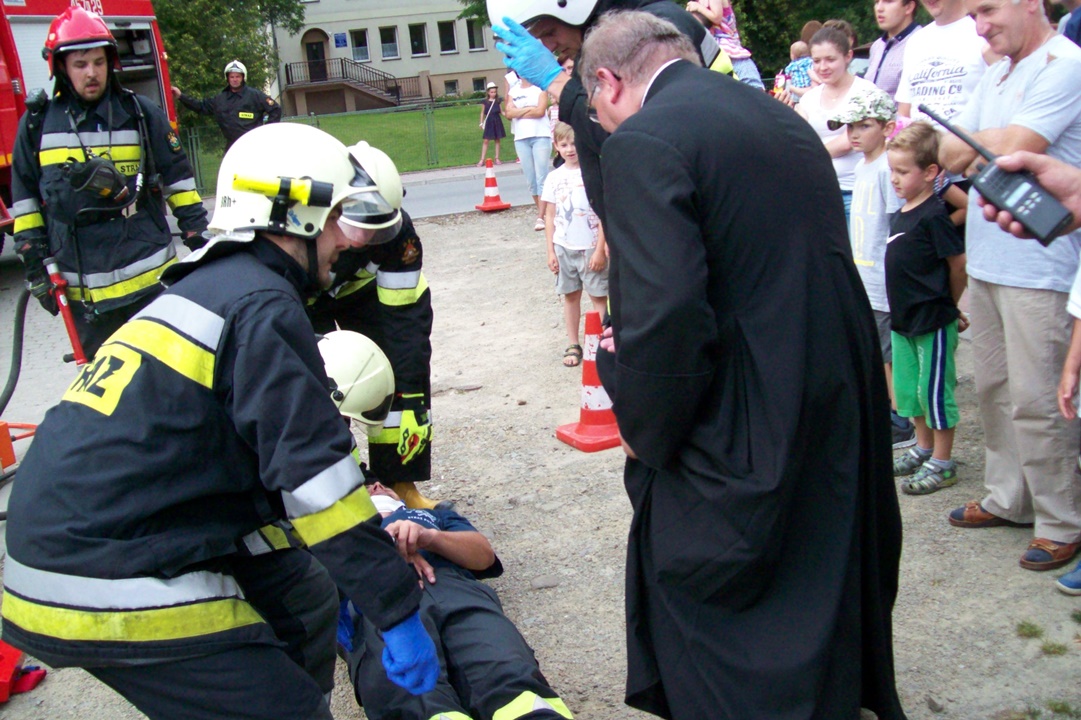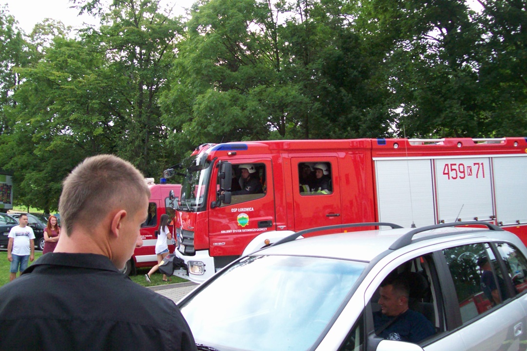 Wśród szeregu atrakcji jakie zostały przygotowane przez organizatorów dla pielgrzymów przygotowujących się w Łukowicy do wzięcia udziału w spotkaniu z papieżem Franciszkiem w Krakowie, znalazł się również pokaz akcji ratowniczej przygotowany przez druhów z OSP Łukowica i OSP Świdnik.