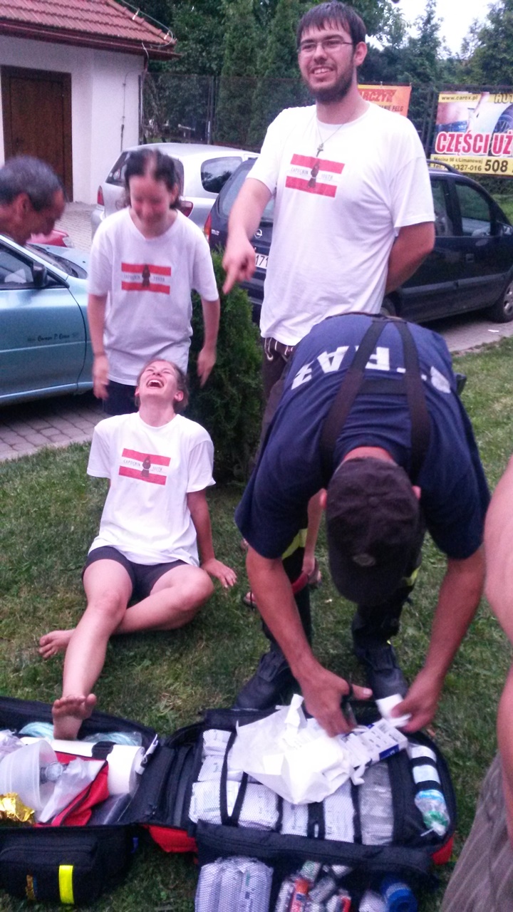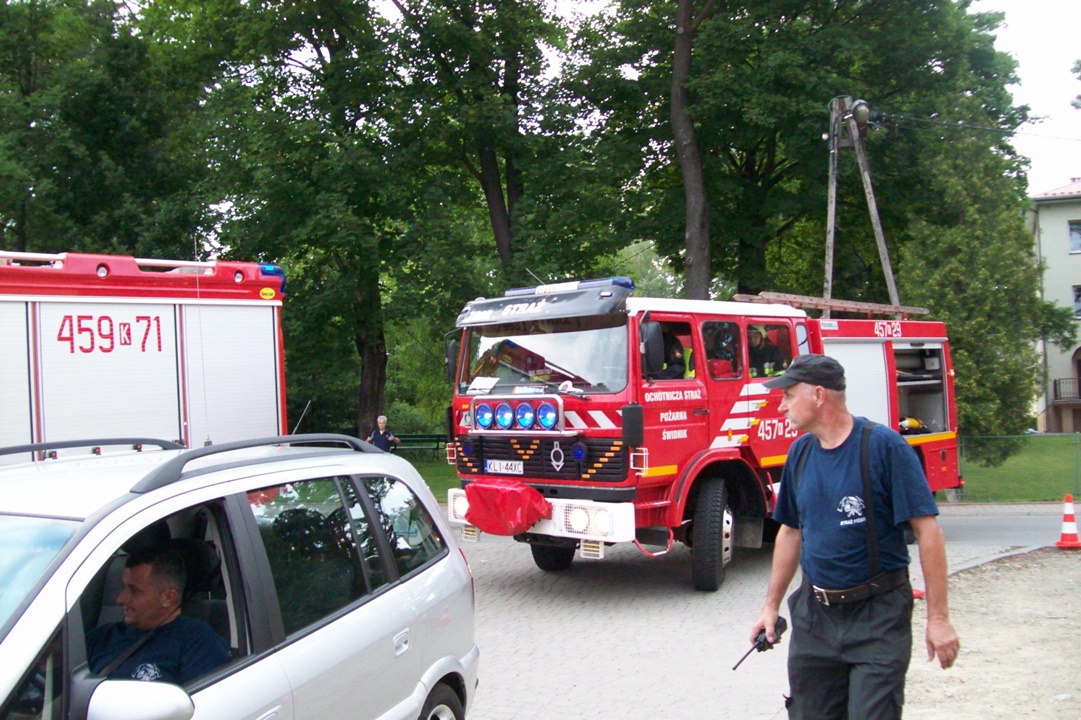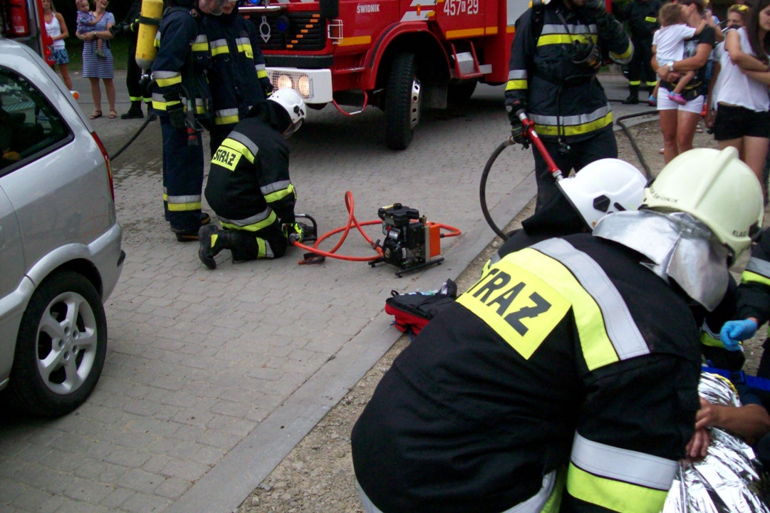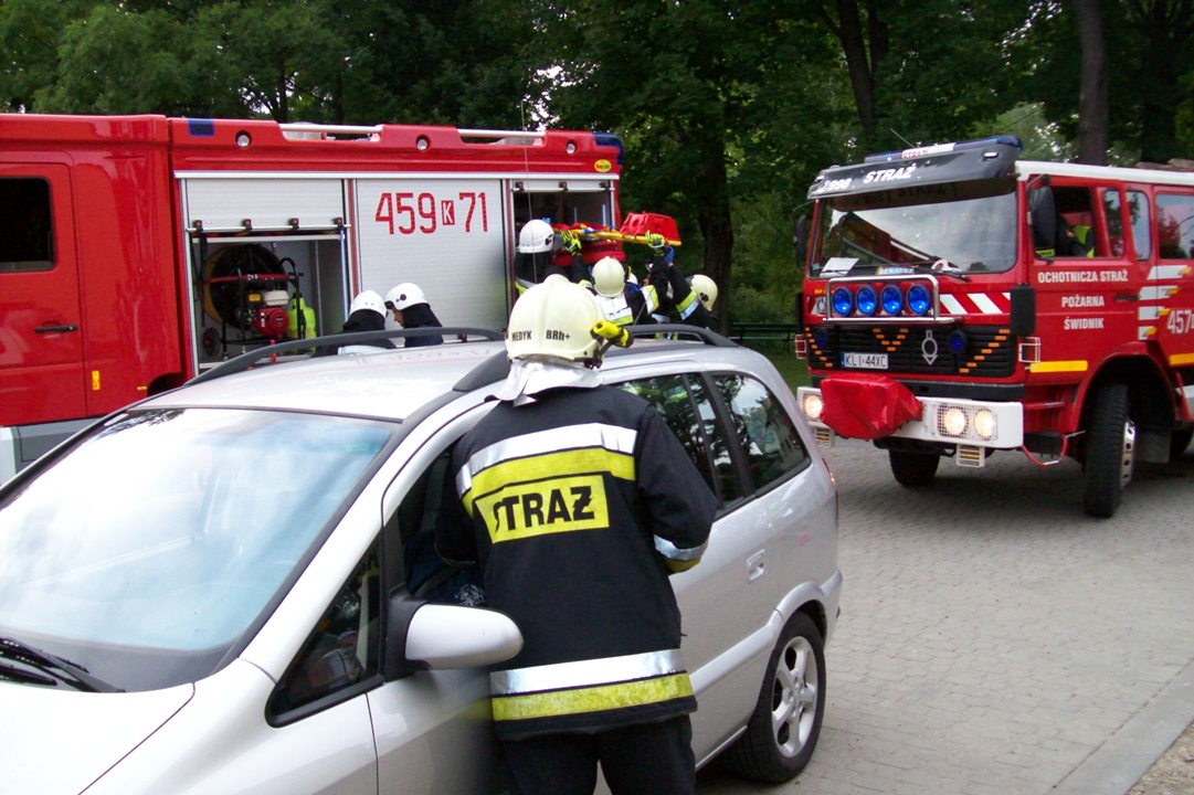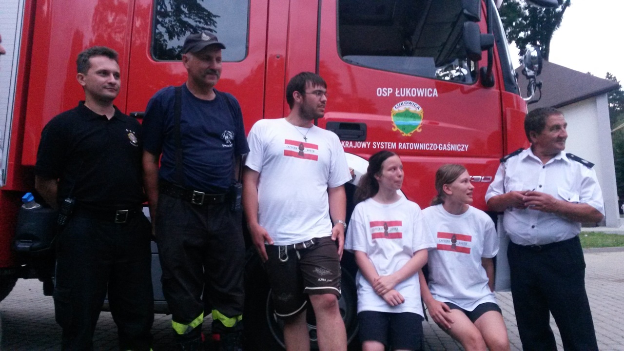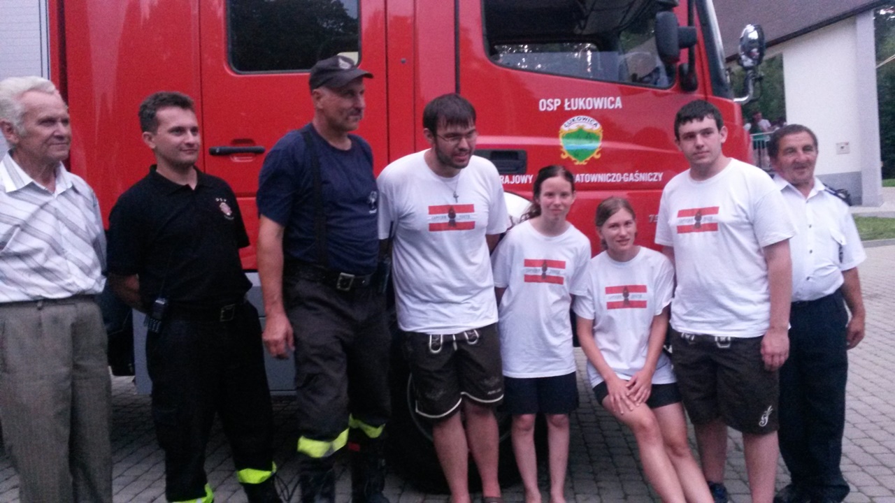 Czterdziestoosobowa grupa pielgrzymów z Austrii przebywająca na terenie parafii Łukowica, w niedzielne popołudnie wspólnie z polską młodzieżą brała udział w "Święcie Rodziny" w Łukowicy. Z tej okazji dwie jednostki OSP z naszej gminy - OSP Łukowica i OSP Świdnik, aby urozmaicić lokalne uroczystość związane z przygotowaniami do ŚDM, zaprezentowały pokaz ratownictwa ukierunkowany na wydobywanie osób poszkodowanych z samochodów. Krótki pokaz obejmował zaledwie jeden z obszarów z jakimi na co dzień mierzy się straż pożarna, ale mając na uwadze okoliczności miał on przede wszystkim wymiar integracyjny i promocyjny.
