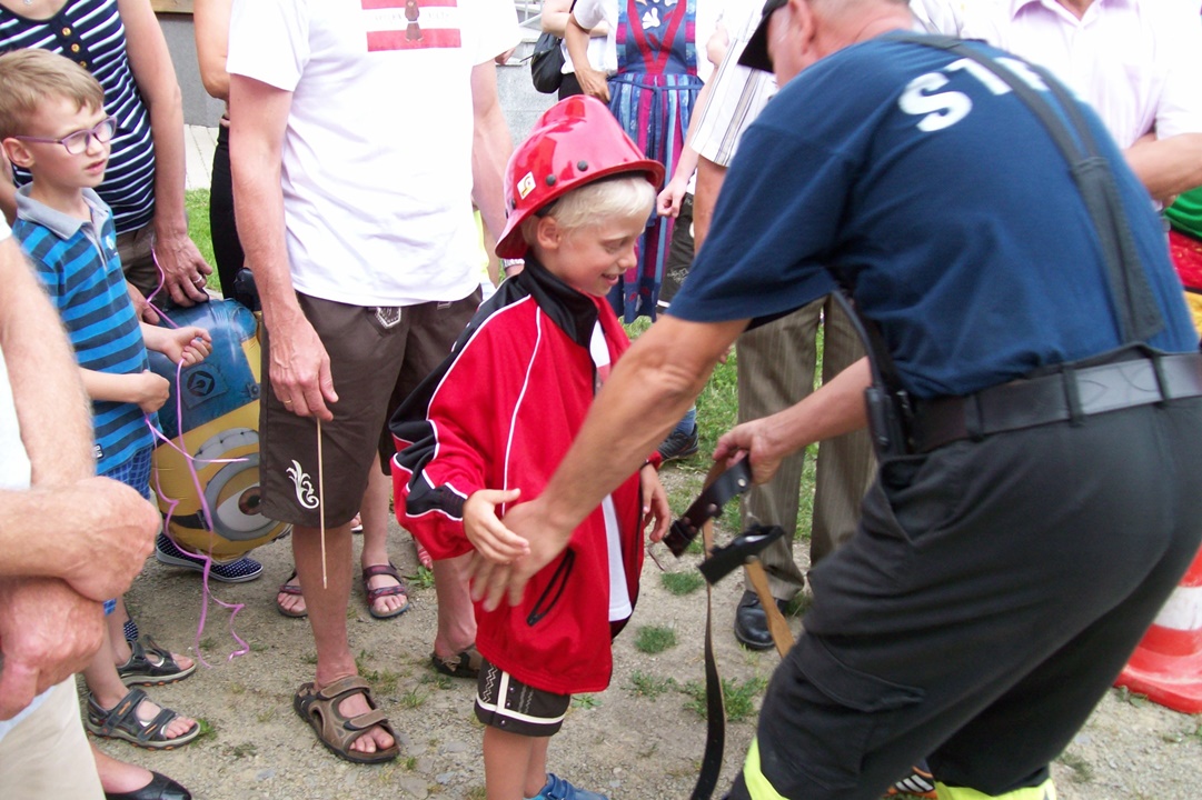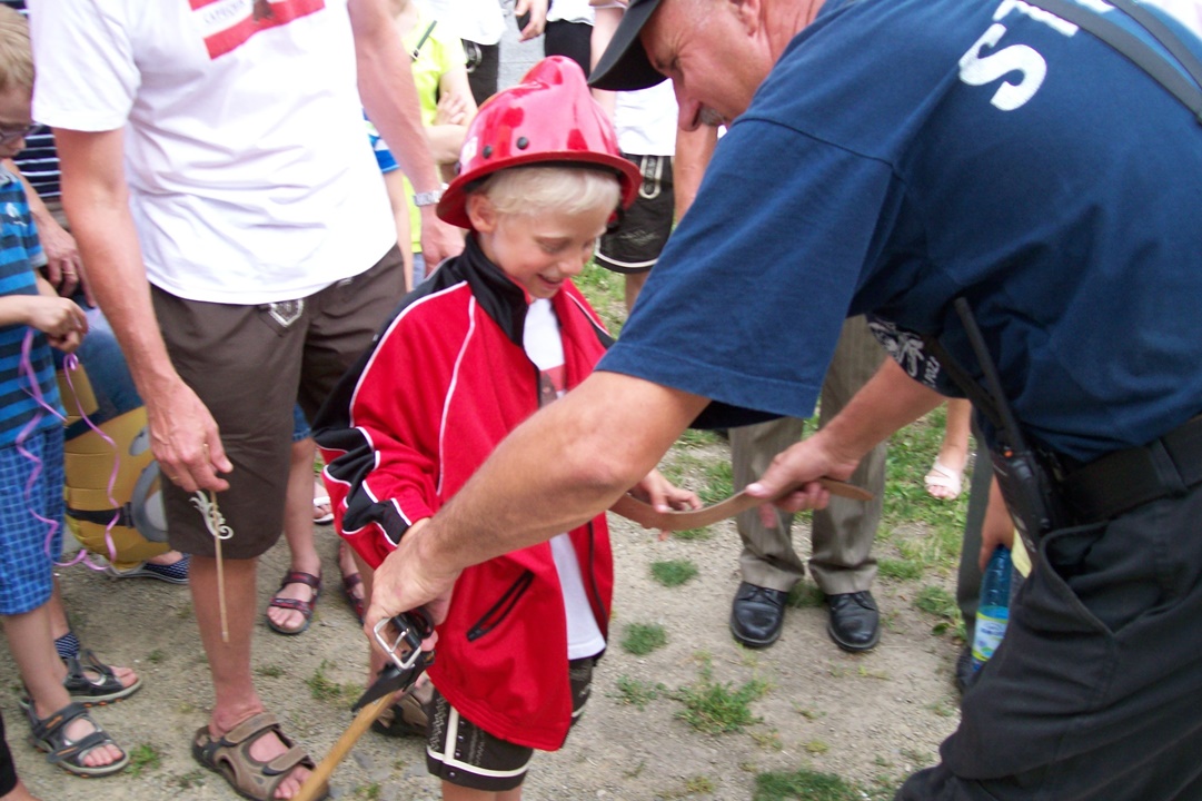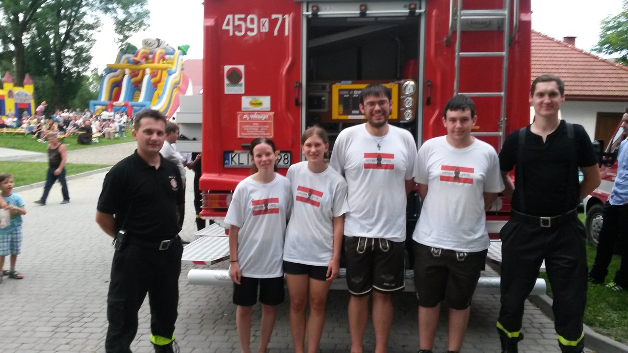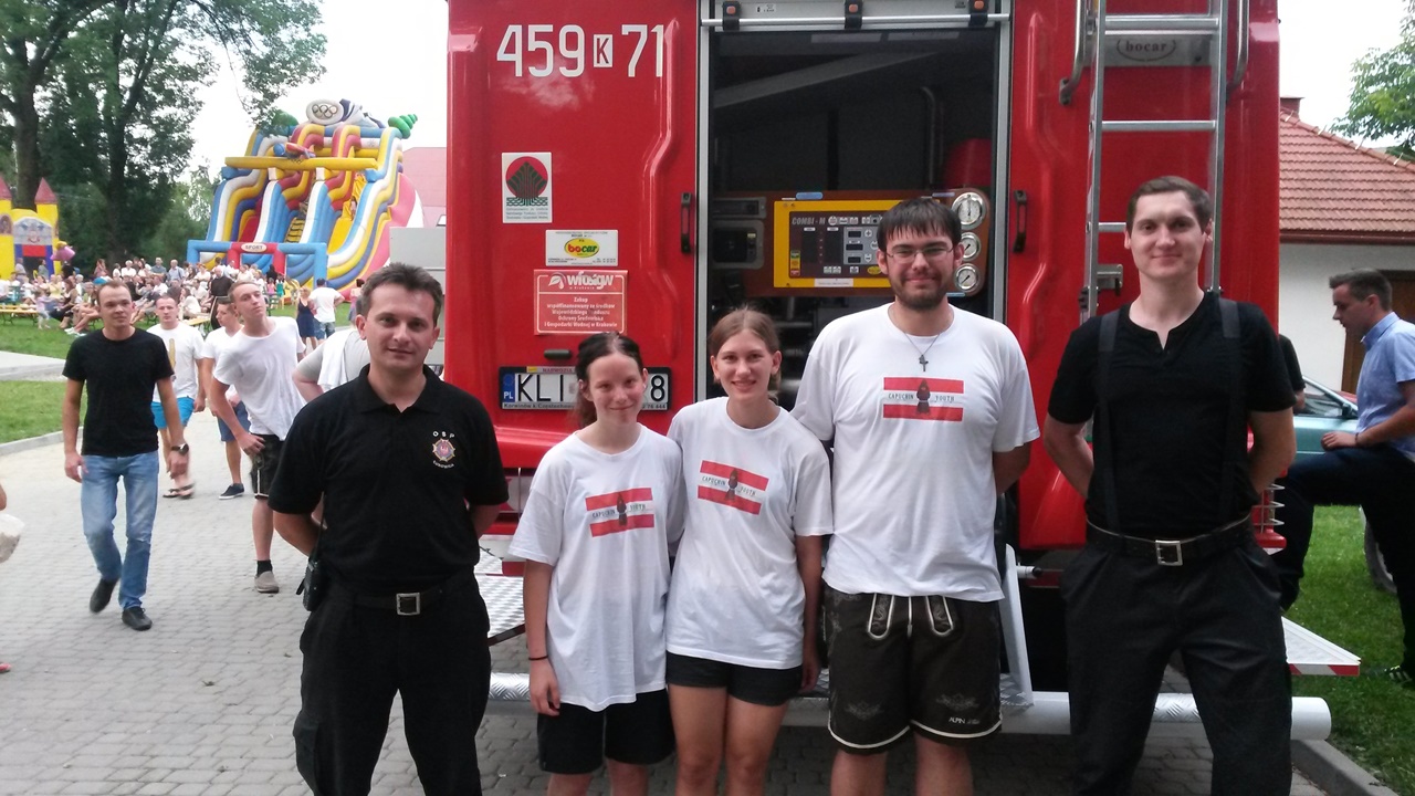 Po pokazie goście z Austrii mieli okazję zapoznać się ze sprzętem będącym na wyposażeniu naszej OSP. Prezentacja sprzętu stała się okazją do nawiązana wzajemnych kontaktów, wymiany doświadczeń i wzajemnych spostrzeżeń. Okazuje się bowiem, iż młodzież austriacka bardzo aktywnie angażuje się w działalność pożarniczą w swoim kraju. Wartością dodaną tego typu wydarzeń jest wzbudzanie zainteresowania działalnością strażacką wśród naszych pięknych Pań, które mamy nadzieję będą stopniowo zasilać nasze szeregi.