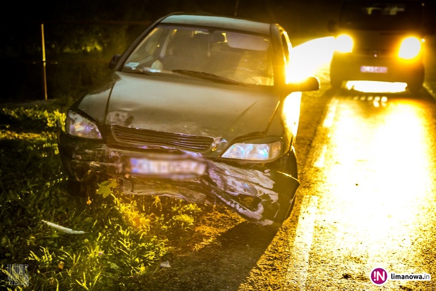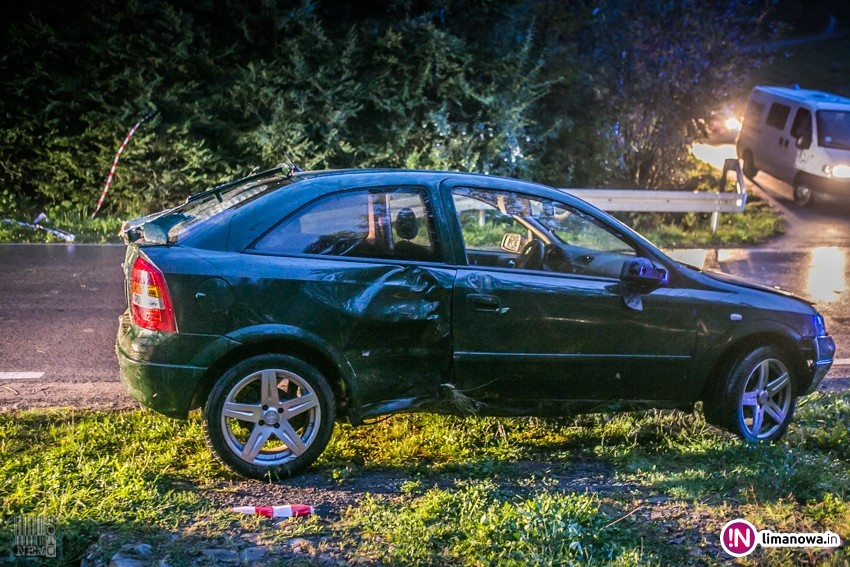 Jadący w kierunku Limanowej kierujący samochodem osobowym marki Opel Astra podczas pokonywania łuku drogi najprawdopodobniej stracił panowanie nad pojazdem. Samochód wypadł z jezdni, a następnie wjechał do koryta potoku. W wyniku zdarzenia poszkodowana została jedna osoba.