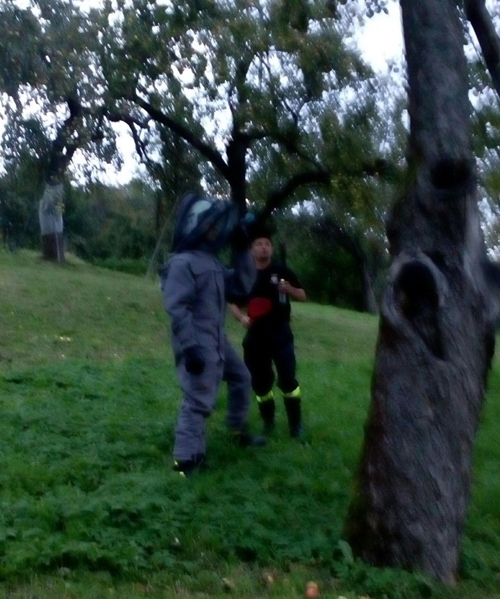 Gniazdo szerszeni znajdowało się w pniu starej jabłoni w sadzie owocowym nieopodal budynków mieszkalnych. W akcji uczestniczył zastęp OSP Łukowica - 459[K]72. „Na pierwszej linii” działali nasi młodsi druhowie Patryk i Tomek. Działania związane z usunięciem zagrożenia trwały niecałą godzinę.