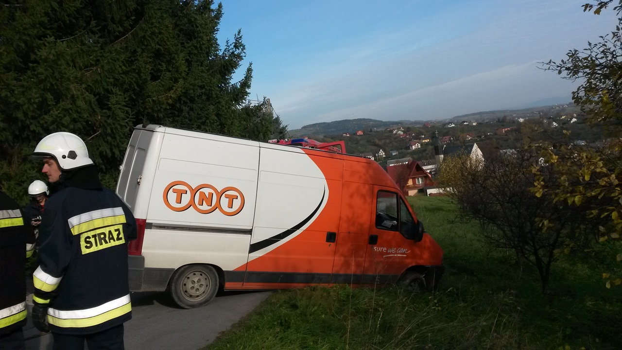 Samochód dostawczy w rowieW dniu 28.09.2016 r. o godz. 13:43 OSP Łukowica została zaalarmowana do zdarzenia drogowego w Łukowicy. Na drodze w kierunku Skiełku samochód transportowy firmy kurierskiej znalazł się częściowo poza jezdnią.