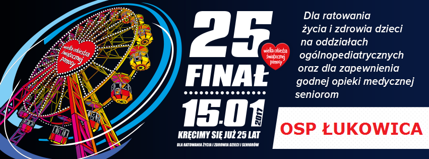 25 Finał WOŚPJuż w najbliższą niedzielę 25 Finał Wielkiej Orkiestry Świątecznej Pomocy!!! Zebrane pieniądze z puszek przeznaczone będą na ratowanie życia i zdrowia na oddziałach ogólnopediatrycznych oraz dla ratowania i zapewniania godnej opieki medycznej seniorom.