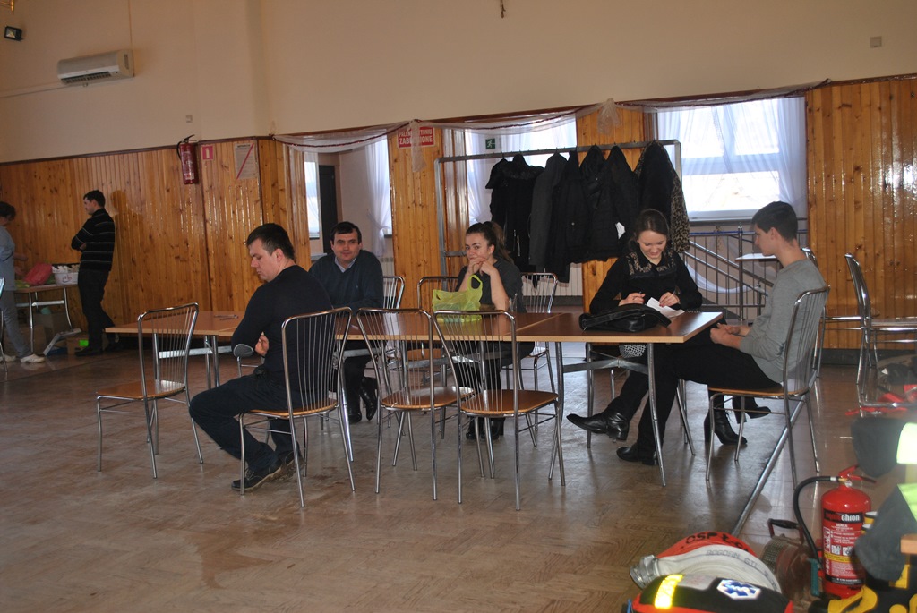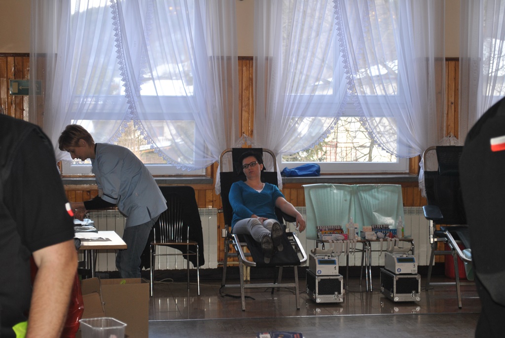 Nie zabrakło również osób, które podzieliły się największym darem jakim jest krew. Chęć oddania wyraziło aż 34 osoby, lecz ostatecznie krew mogło oddać 27 osób, co dało łącznie 12 litrów drogocennej krwi. Dziękujemy wszystkim dawcom oraz paniom z Regionalnego Centrum Krwiodawstwa i Krwiolecznictwa oddział w Limanowej, które poświęciły swój wolny czas żeby do nas przyjechać. Prowadziliśmy również loterię fantową gdzie każdy mógł nabyć ciekawe gadżety: książki, koszulki, kalendarze itp. Ponadto strażacy udzielali instruktażu udzielania pierwszej pomocy przedmedycznej, przy wsparciu kolegów strażaków z Ochotniczej Straży Pożarnej w Starej Wsi.