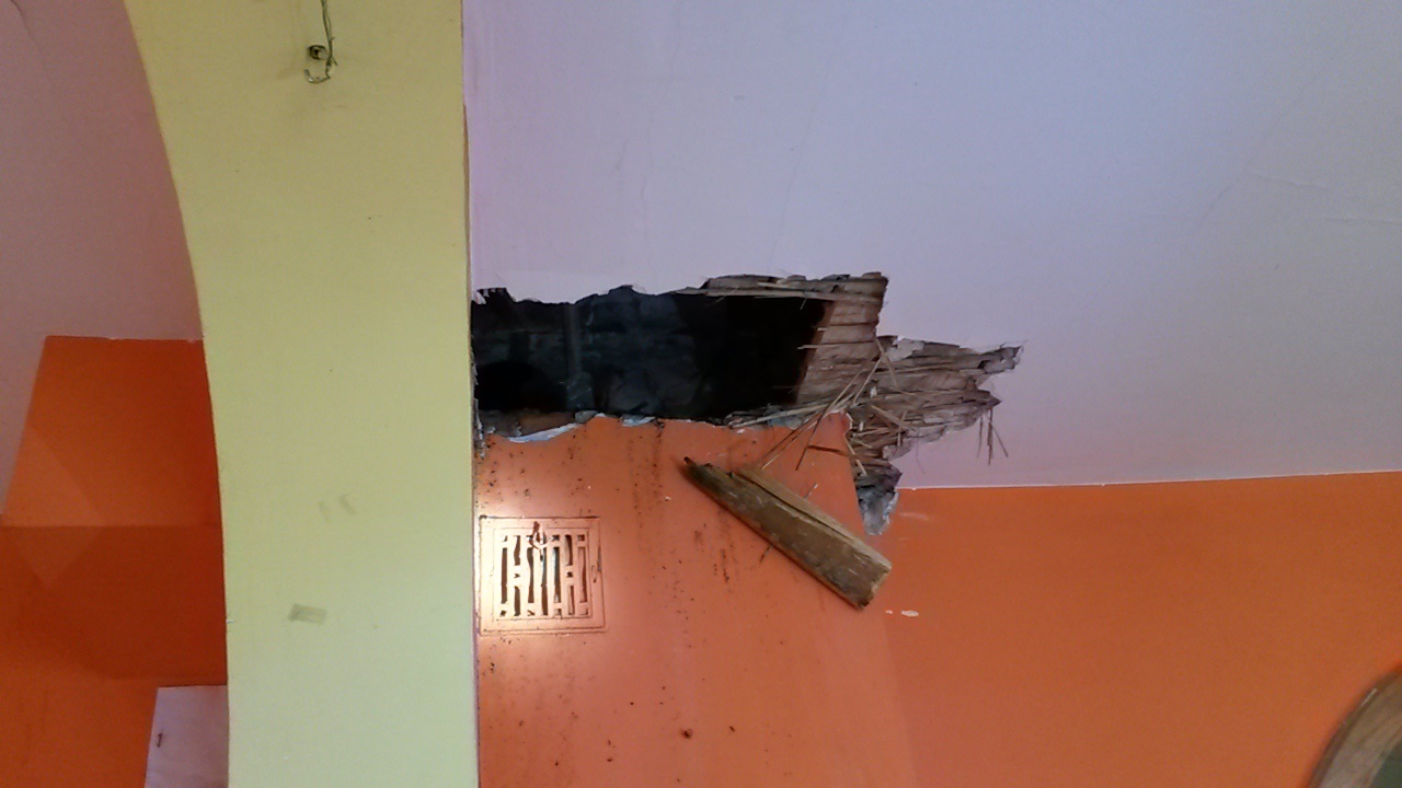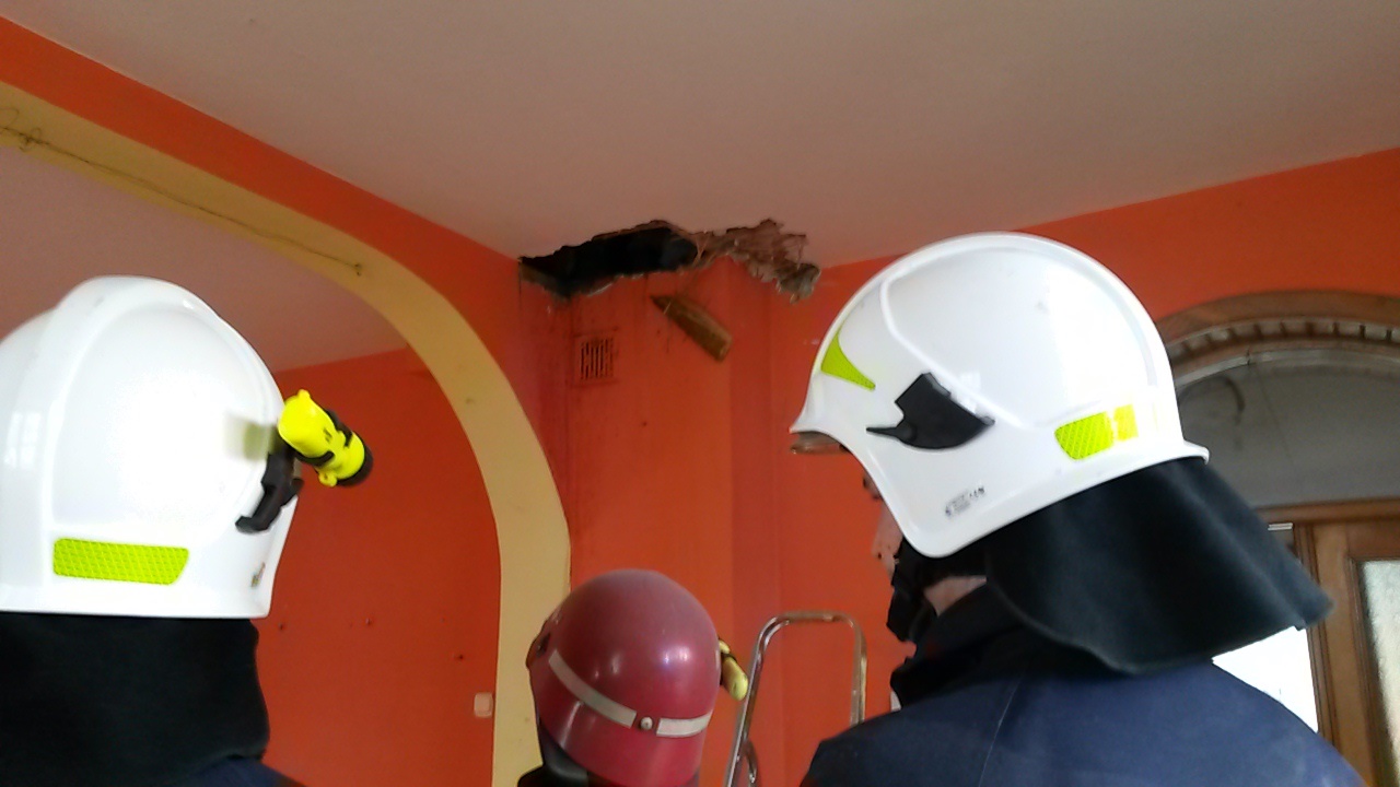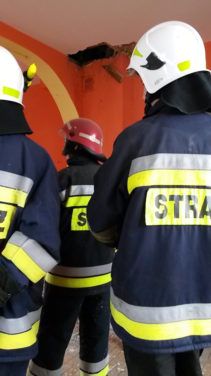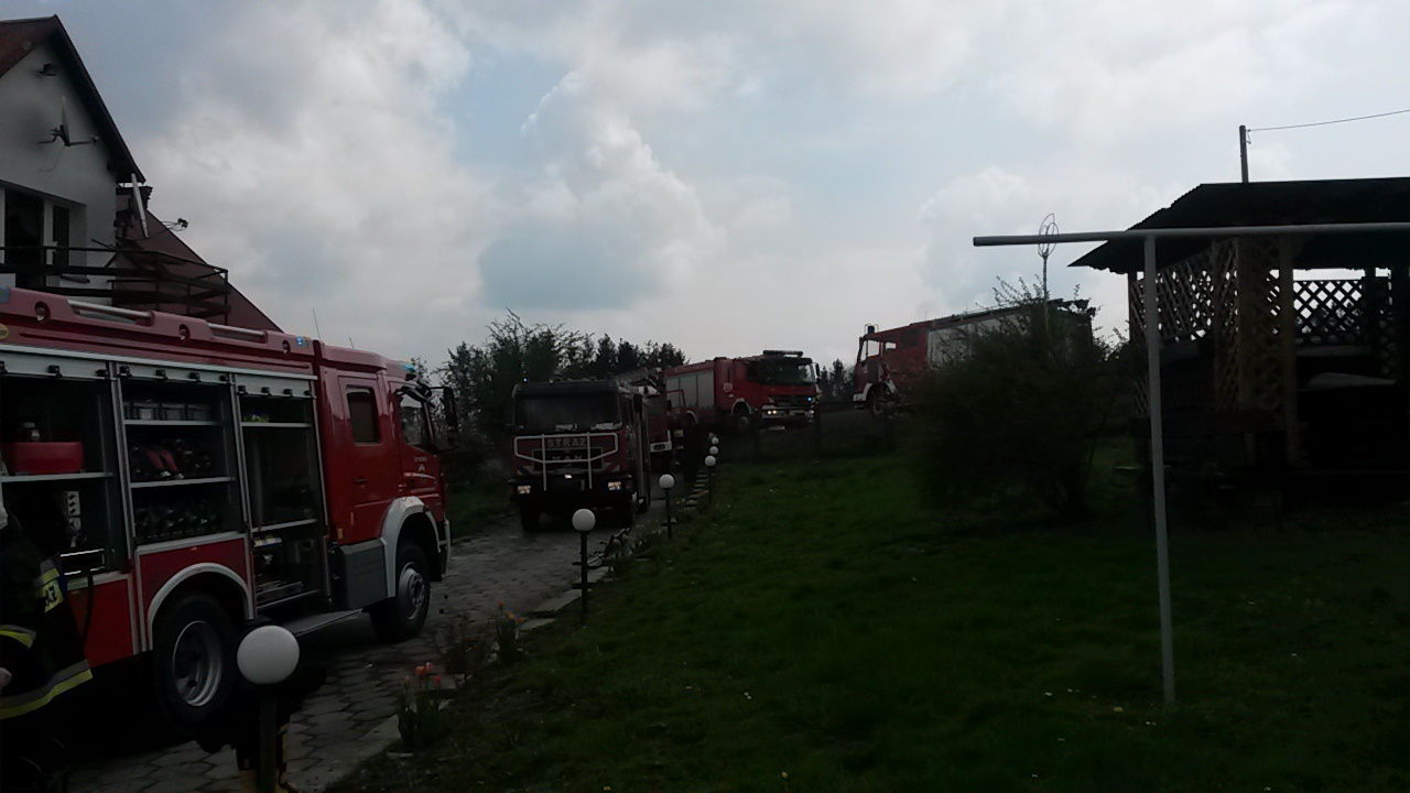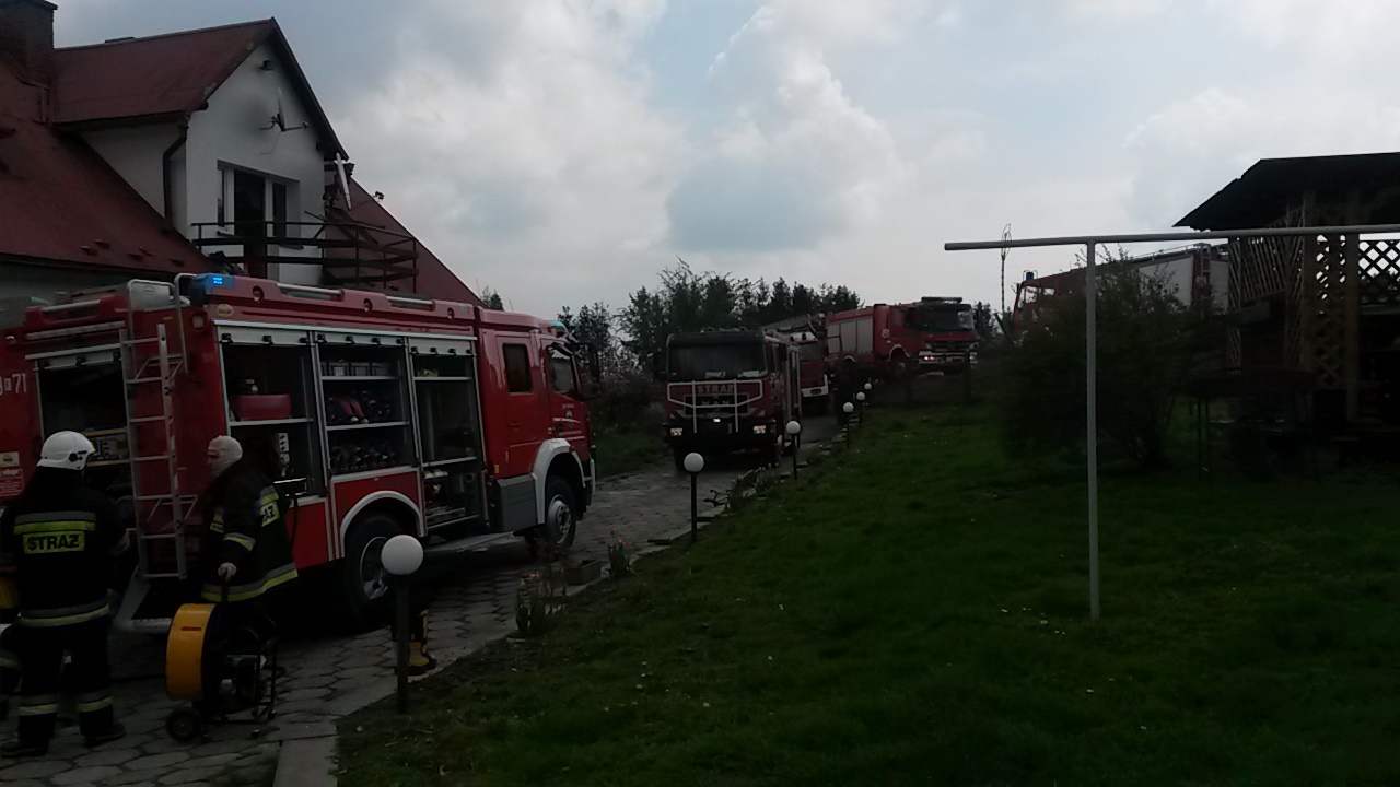 Po dotarciu na miejsce zastano duże zadymienie poddasza. Pożarem objęty był komin budynku, od którego zaczynał się on rozprzestrzeniać na przyległe obiekty. Ogień strawił drewniane elementy wykończenia wnętrza m.in. podłogę oraz boazerię.