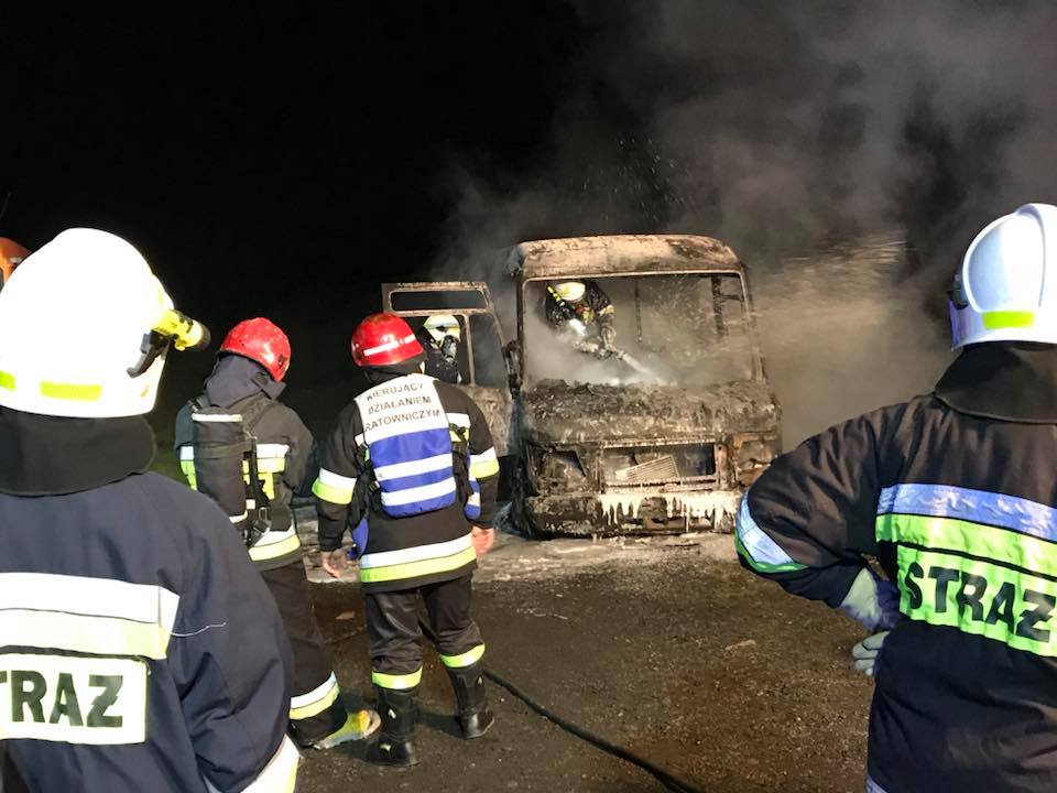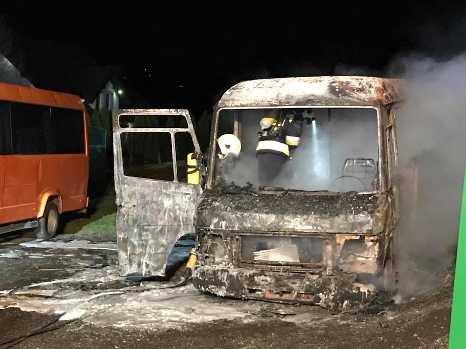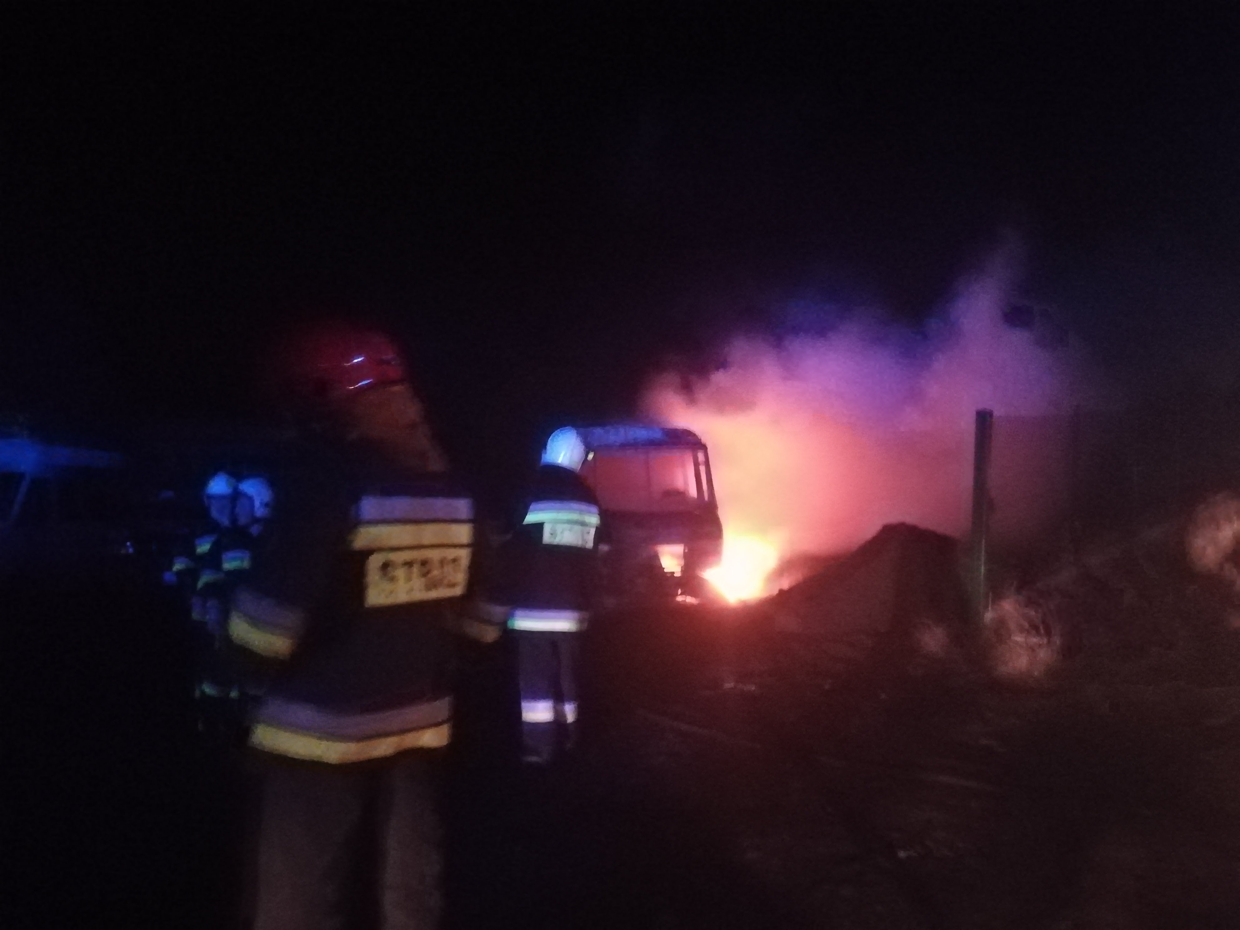 Po dotarciu na miejsce, na prywatnej posesji zastano samochod do przewozu osób w całości objęty ogniem. Natychmiast przystąpiono do akcji gaśniczej. W wyniku pożaru na szczęście żadna z osób nie odniósła obrażeń. Działania zostały ukończone po ok. 1,5 godzinie.
