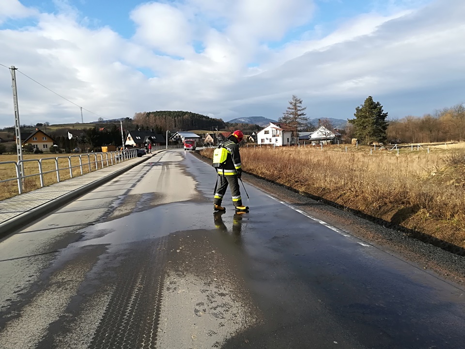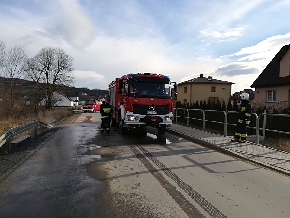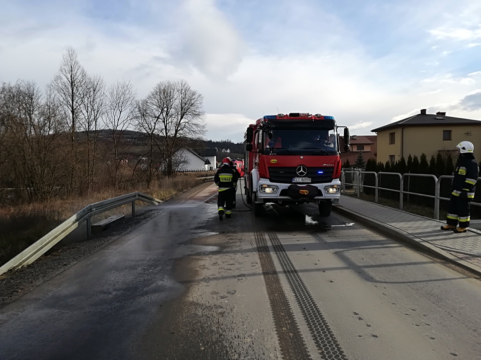 Do zdarzenia udali się strażacy-ratownicy , po jednym zastępie z jednostki OSP w Łukowicy i z OSP Świdnik oraz zastęp z Jednostki Ratowniczo-Gaśniczej z PSP w Limanowej, a także Policja. Po dotarciu na miejsce zastano pas rozlanego oleju ciągnący się ok. 200 metrów oraz unieruchomiony samochód z którego wydobył się olej. Zdarzenie zostało spowodowane w wyniku najechania przez kierującego samochodem osobowym na kamień sporej wielkości, który z niewiadomych przyczyn znajdował się na drodze, a który to doprowadził do uszkodzenia misy olejowej. Działania strażaków polegały na neutralizacji plamy oleju i uprzątnięciu jej z jezdni. Trwały około godzinę.
