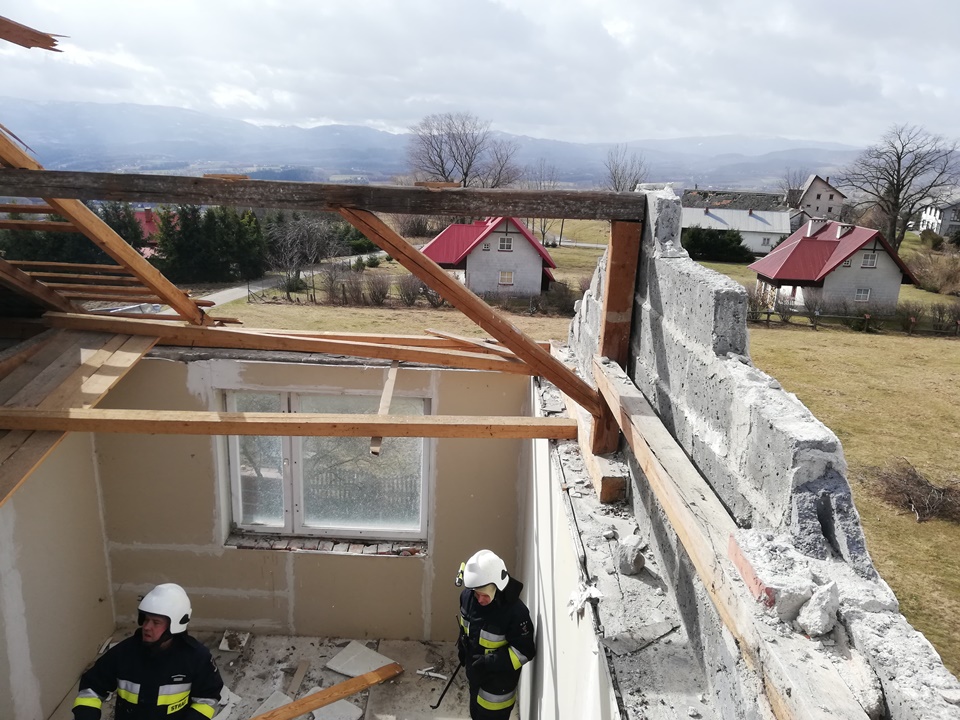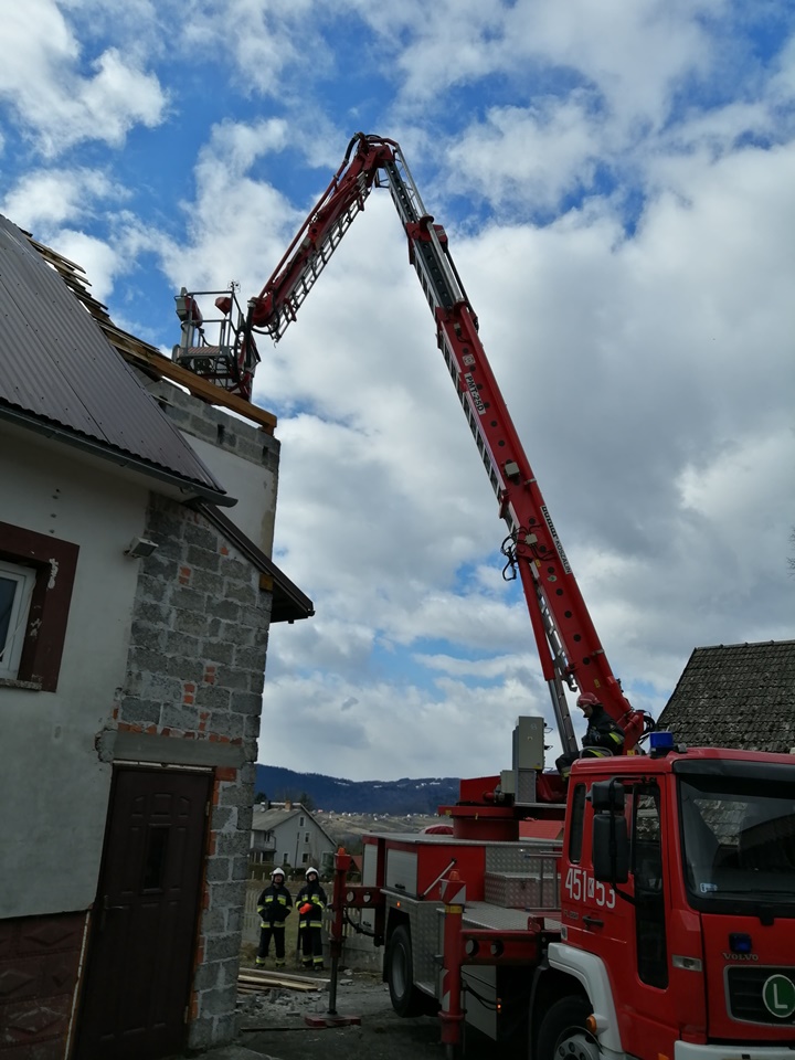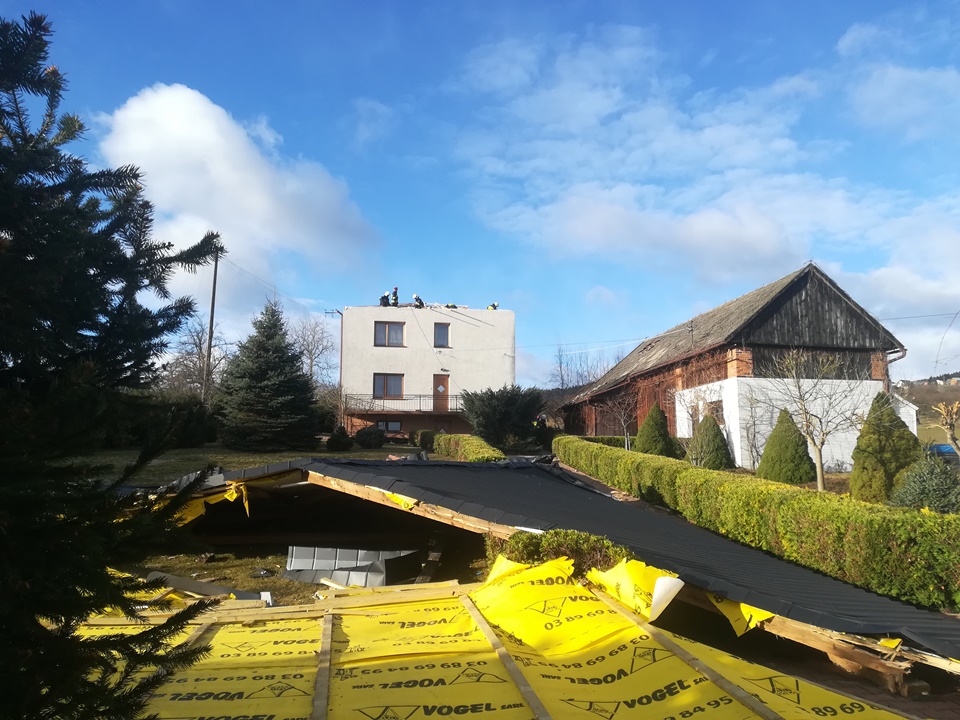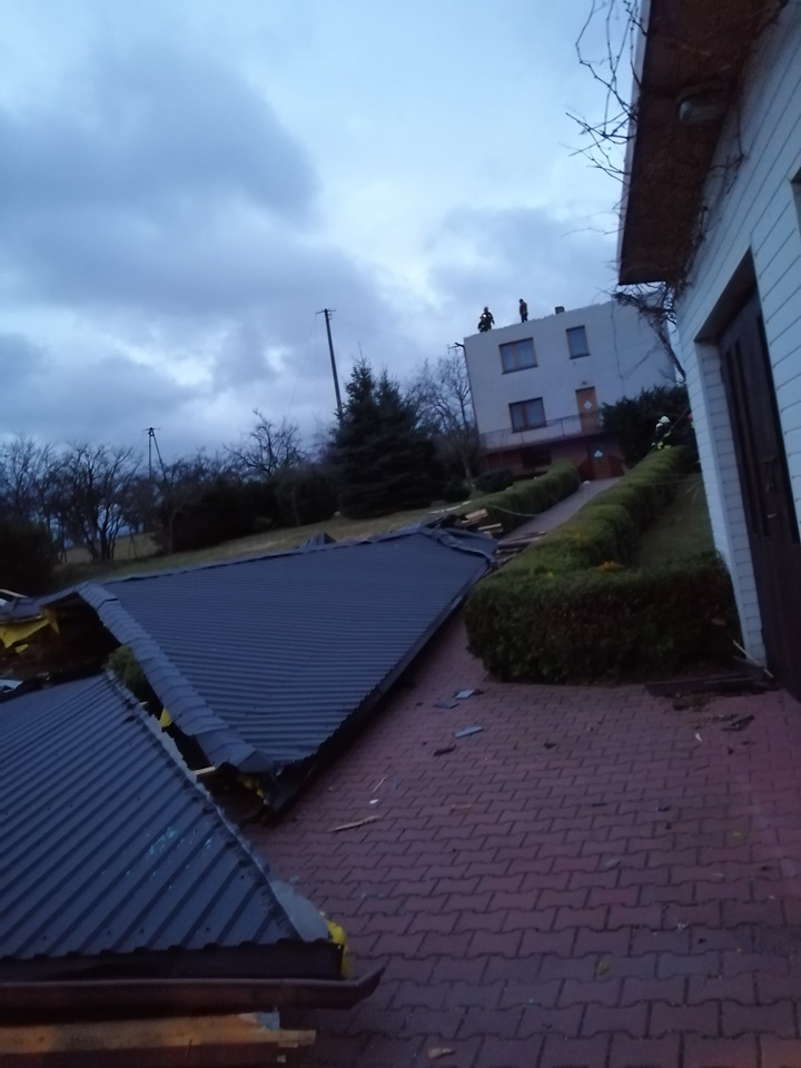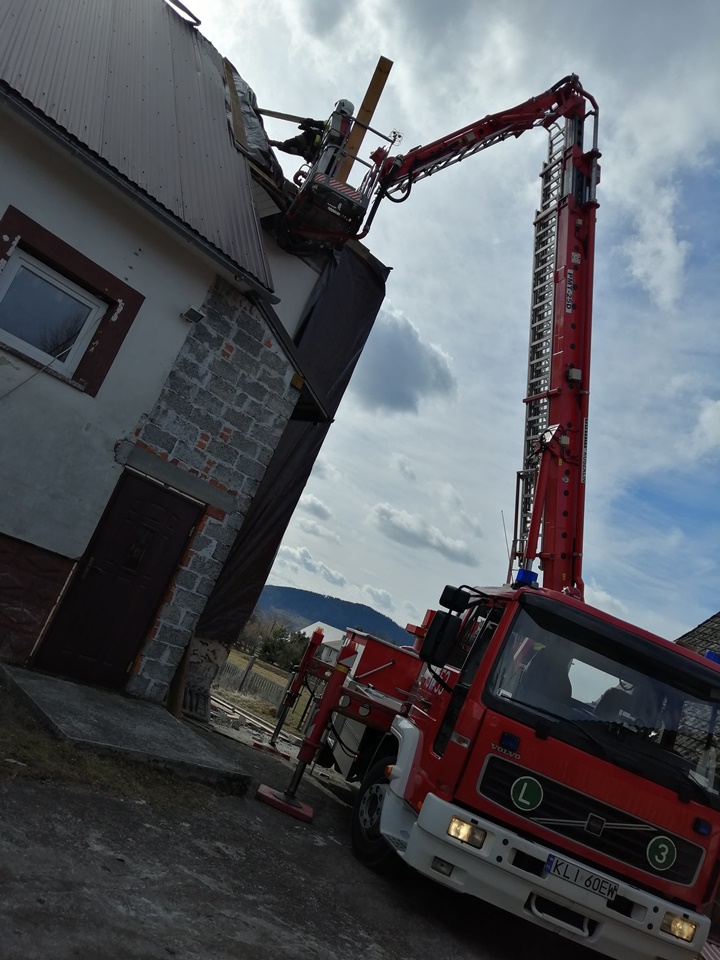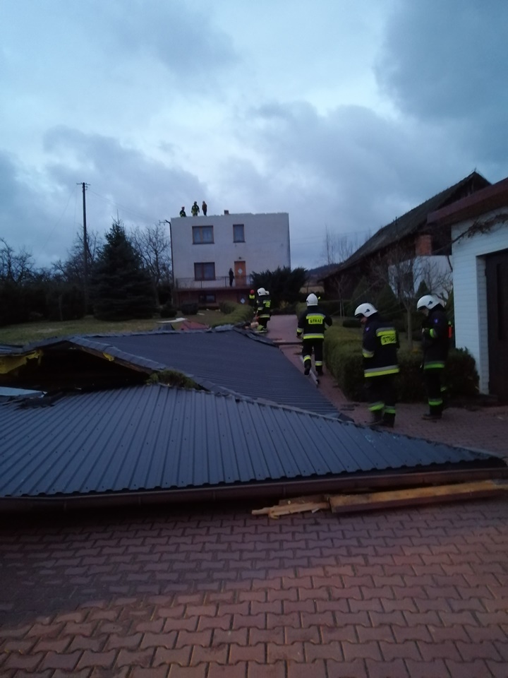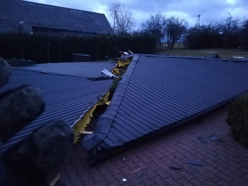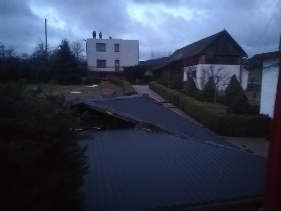 Zerwane dachy, powalone drzewa... - skutki porywistych wiatrów nad naszym rejonemW dniu 11 marca 2019 roku kilka minut po trzeciej w nocy strażacy Ochotniczej Straży Pożarnej w Łukowicy zostali poderwani do niesienia pomocy potrzebującym w usuwaniu skutków wichur jakie przeszły nad naszym regionem.