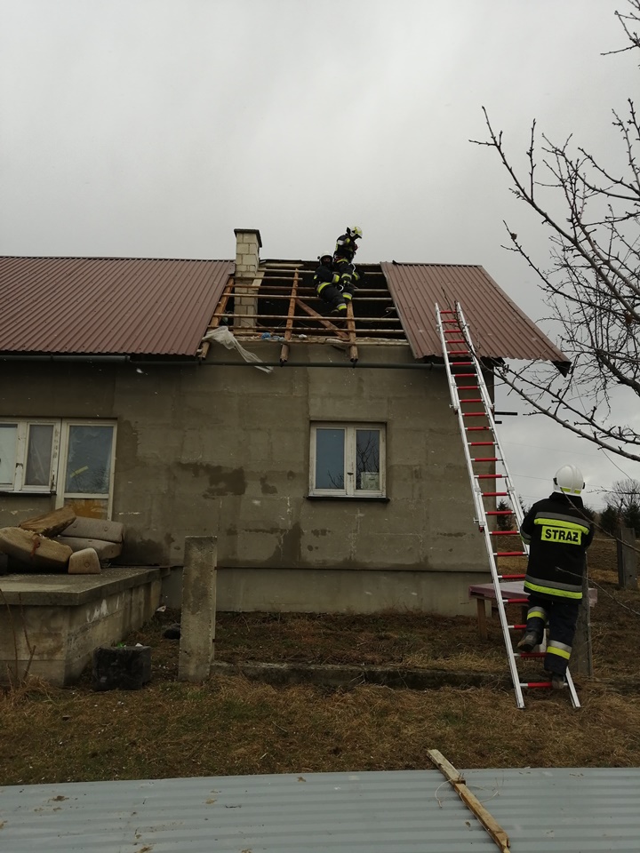 W poniedziałek 11 marca 2019 roku Ochotnicza Straż Pożarna podejmowała kilkanaście interwencji w związku ze skutkami porywistego wiatru. Najpoważniejsze interwencje dotyczyły pomocy poszkodowanym w związku z zerwanymi lub uszkodzonymi dachami. Wiele zdarzeń wiązało się z usuwaniem powalonych drzew na budynki mieszkalne, gospodarcze, bądź blokujące przejazd po drogach powiatowych i gminnych.