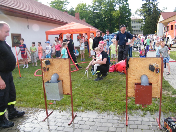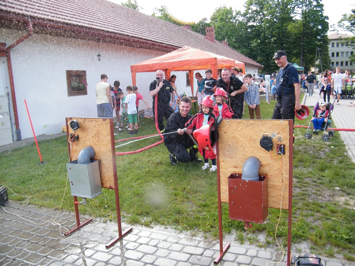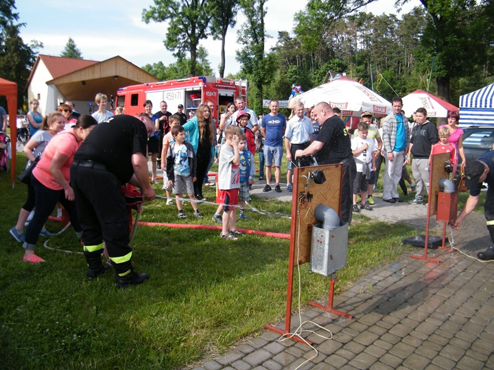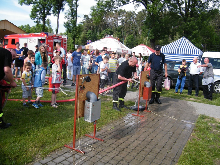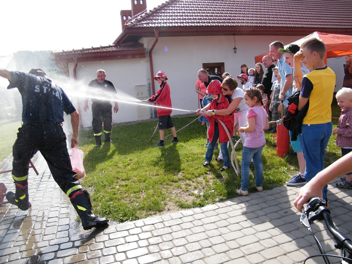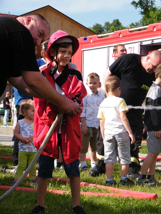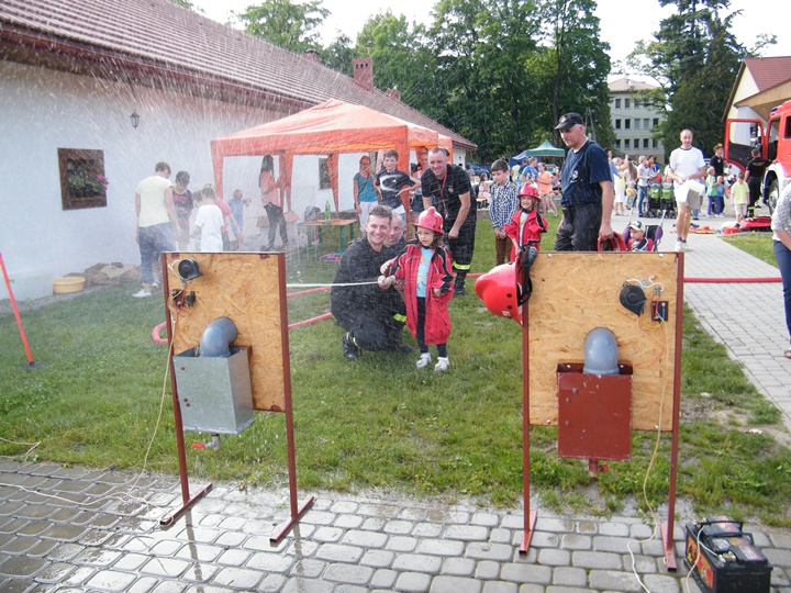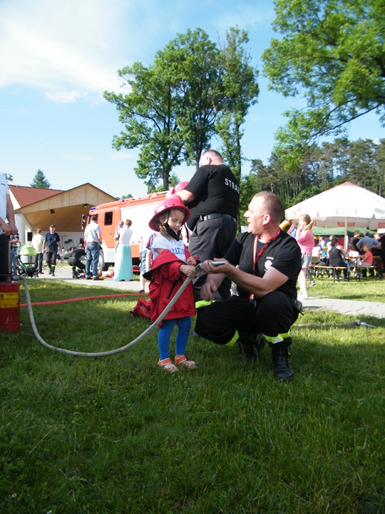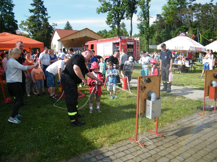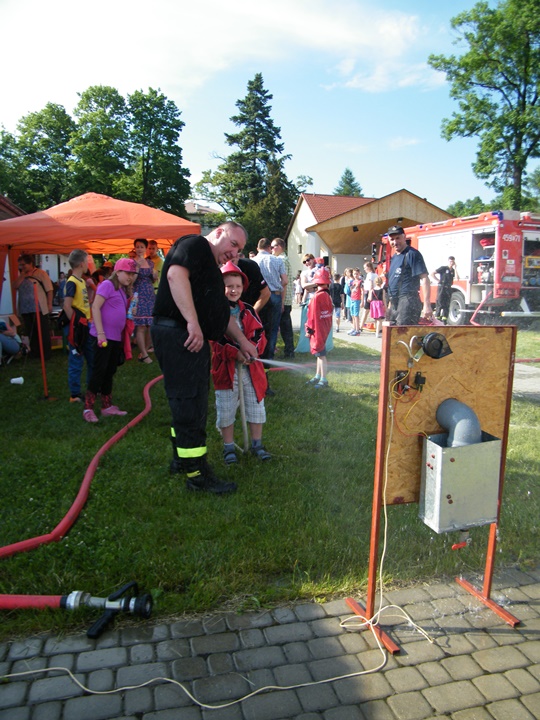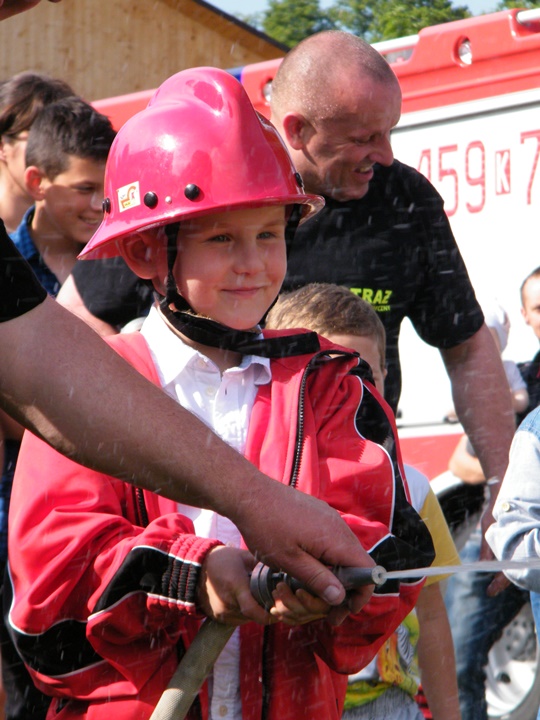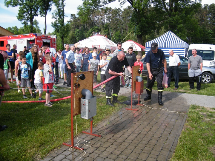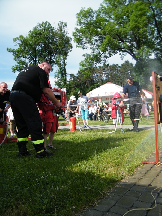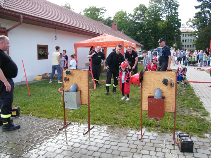 Po wlaniu odpowiedniej ilości wody, zapalała się lampka sygnalizacyjna i rozlegał się sygnał akustyczny - syrena! Nad zaopatrzeniem wodnym z prądownicą w ręku czuwał dh Andrzej Kożuch. Rywalizacja ta spotkała się z bardzo dużym zainteresowaniem wśród zgromadzonych dzieci, które wczuwały się w pracę strażaka ubierając do tej konkurencji hełm strażacki i bluzę OSP. Nagrodą dla dzieci za ukończoną konkurencję były słodycze wręczane przez Prezesa OSP. Nad sprawnym przebiegiem konkurencji czuwali strażacy z naszej OSP, w tym Prezes dh Józef Pietrzak oraz dh Michał Sułkowski - opiekun Młodzieżowej Drużyny Pożarniczej, a zarazem pomysłodawca zabawy.