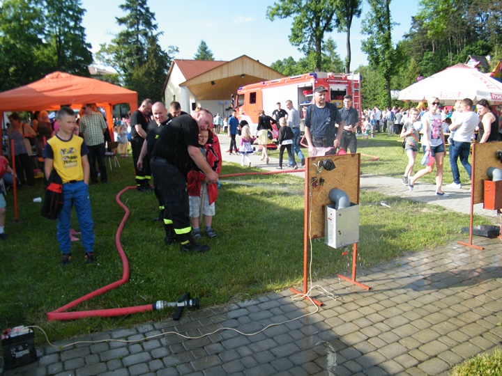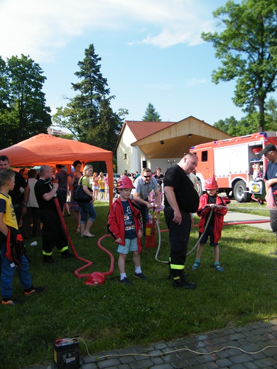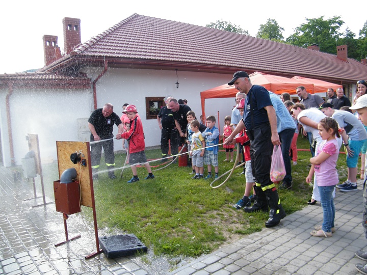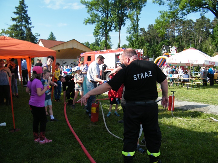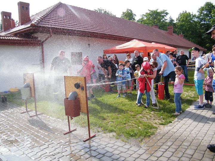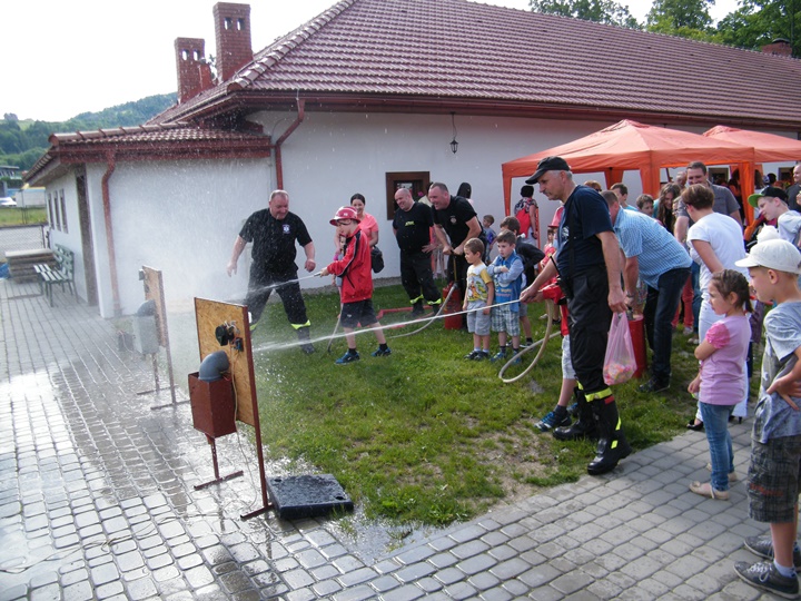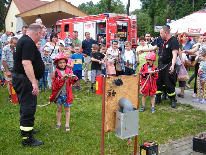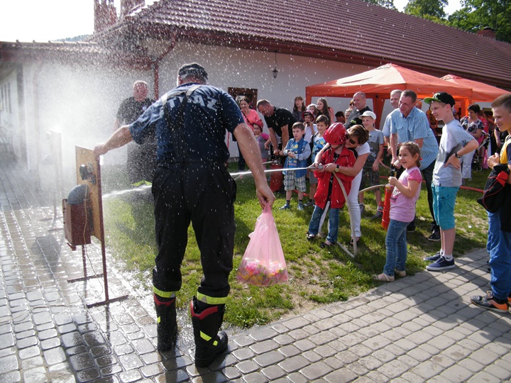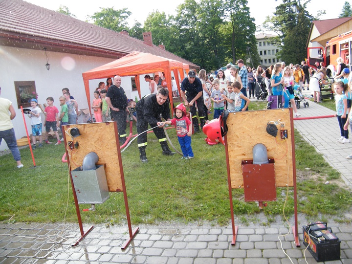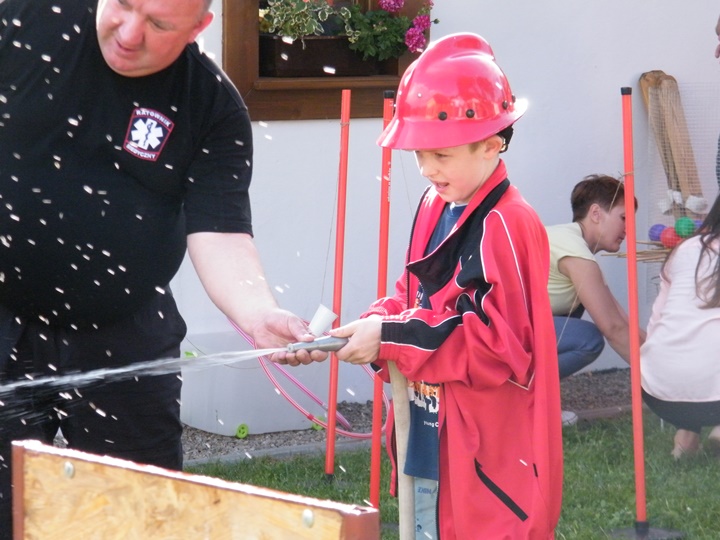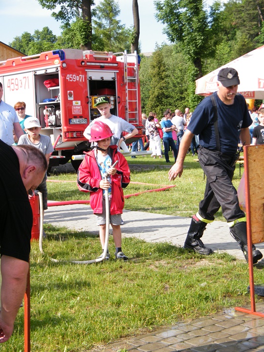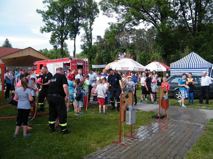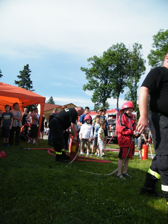 Po wlaniu odpowiedniej ilości wody, zapalała się lampka sygnalizacyjna i rozlegał się sygnał akustyczny - syrena! Nad zaopatrzeniem wodnym z prądownicą w ręku czuwał dh Andrzej Kożuch. Rywalizacja ta spotkała się z bardzo dużym zainteresowaniem wśród zgromadzonych dzieci, które wczuwały się w pracę strażaka ubierając do tej konkurencji hełm strażacki i bluzę OSP. Nagrodą dla dzieci za ukończoną konkurencję były słodycze wręczane przez Prezesa OSP. Nad sprawnym przebiegiem konkurencji czuwali strażacy z naszej OSP, w tym Prezes dh Józef Pietrzak oraz dh Michał Sułkowski - opiekun Młodzieżowej Drużyny Pożarniczej, a zarazem pomysłodawca zabawy.