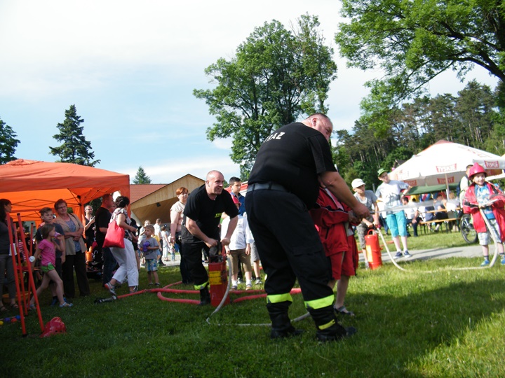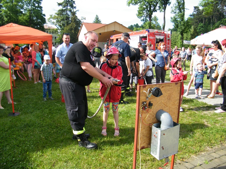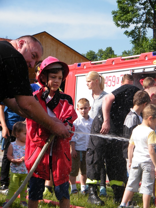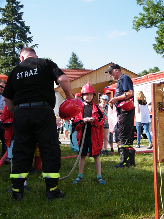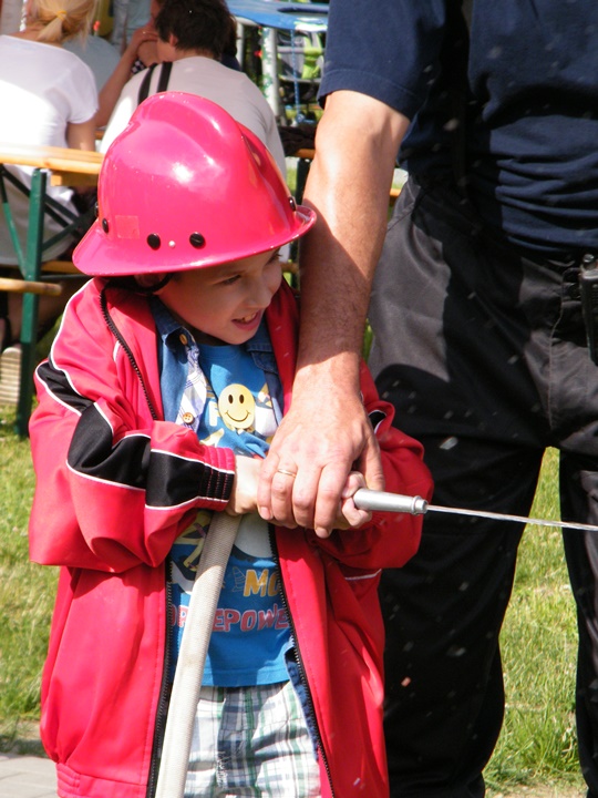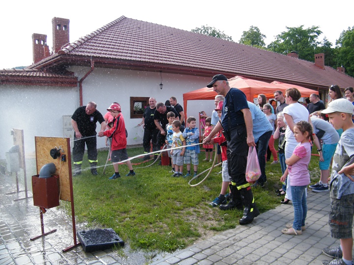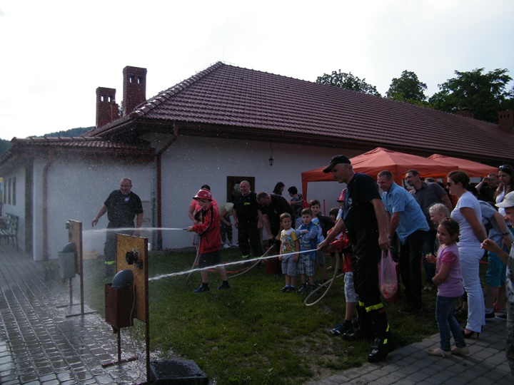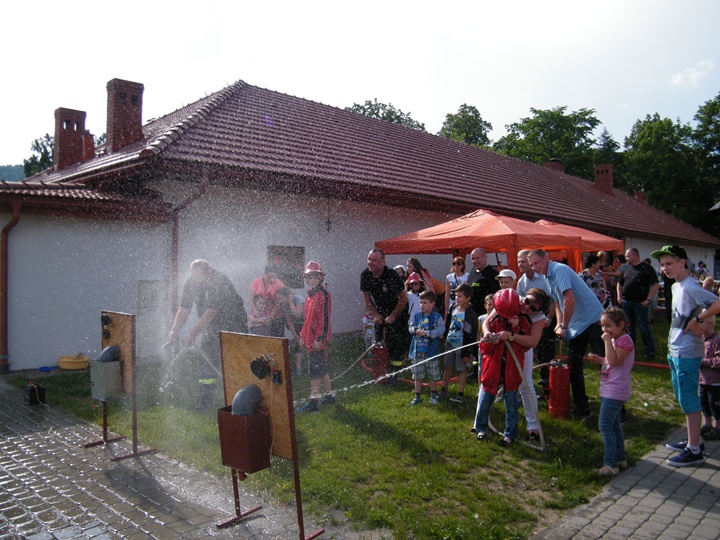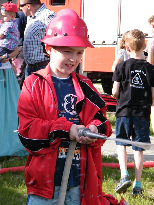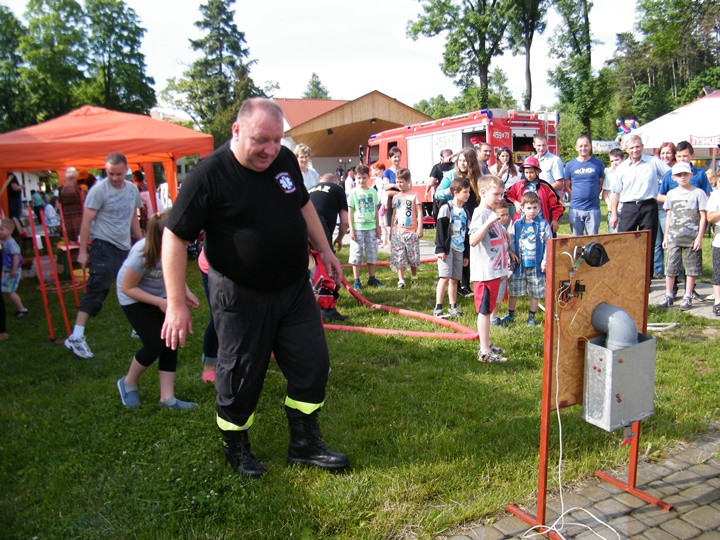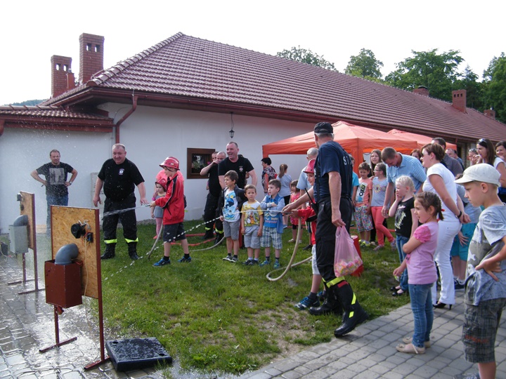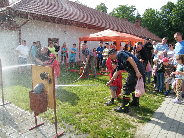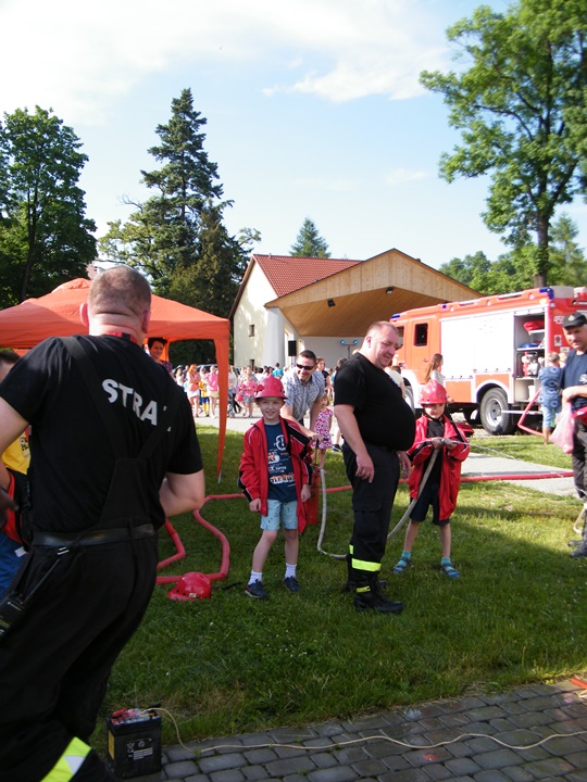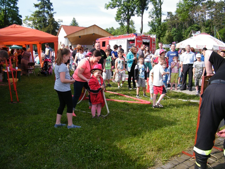 Po wlaniu odpowiedniej ilości wody, zapalała się lampka sygnalizacyjna i rozlegał się sygnał akustyczny - syrena! Nad zaopatrzeniem wodnym z prądownicą w ręku czuwał dh Andrzej Kożuch. Rywalizacja ta spotkała się z bardzo dużym zainteresowaniem wśród zgromadzonych dzieci, które wczuwały się w pracę strażaka ubierając do tej konkurencji hełm strażacki i bluzę OSP. Nagrodą dla dzieci za ukończoną konkurencję były słodycze wręczane przez Prezesa OSP. Nad sprawnym przebiegiem konkurencji czuwali strażacy z naszej OSP, w tym Prezes dh Józef Pietrzak oraz dh Michał Sułkowski - opiekun Młodzieżowej Drużyny Pożarniczej, a zarazem pomysłodawca zabawy.