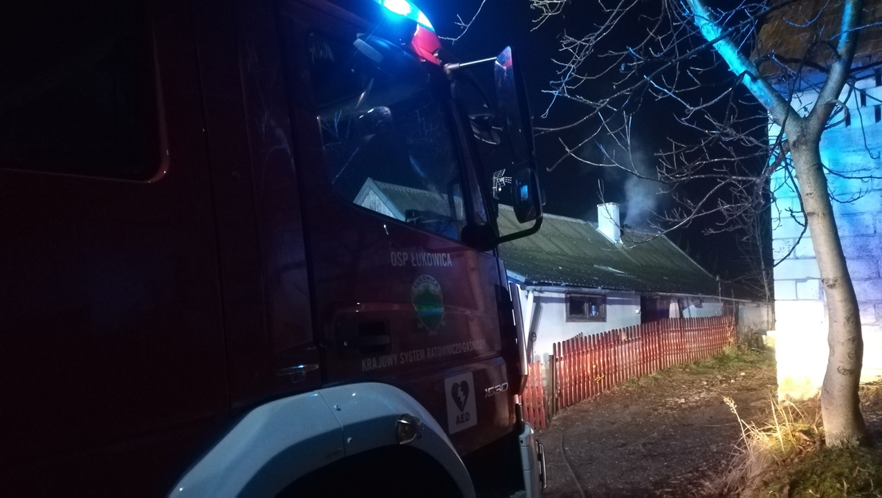 ŁUKOWICA. POŻAR SADZY W PRZEWODZIE KOMINOWYM W BUDYNKU MIESZKALNYM.