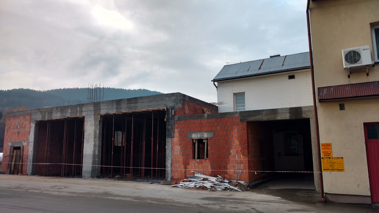 Fotorelacja przedstawiająca poszczególne etapy rozbudowy remizy OSP w Łukowicy:
