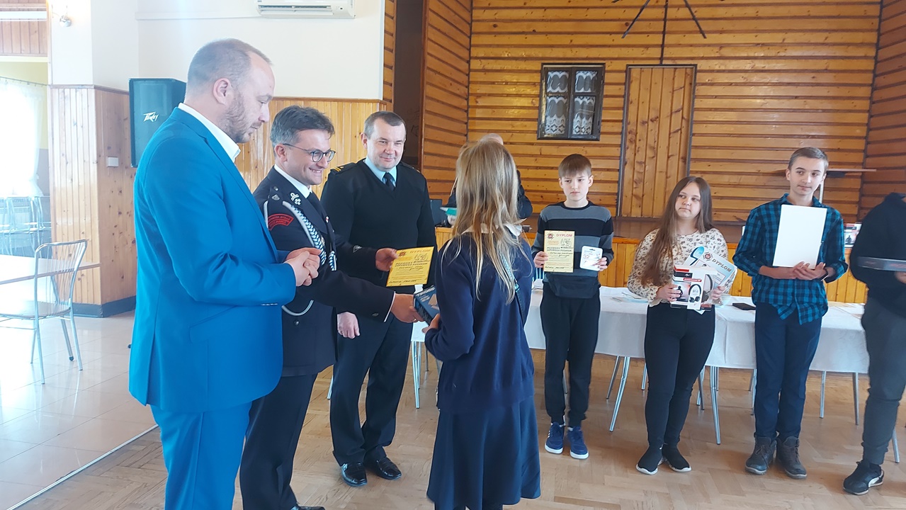 Laureatom dyplomy, nagrody rzeczowe i gratulacje przekazali członkowie Jury: Janusz Koza, mł. bryg. Krzysztof Hybel, Józef Pietrzak oraz Bogdan Łuczkowski - Wójt Gminy Łukowica.