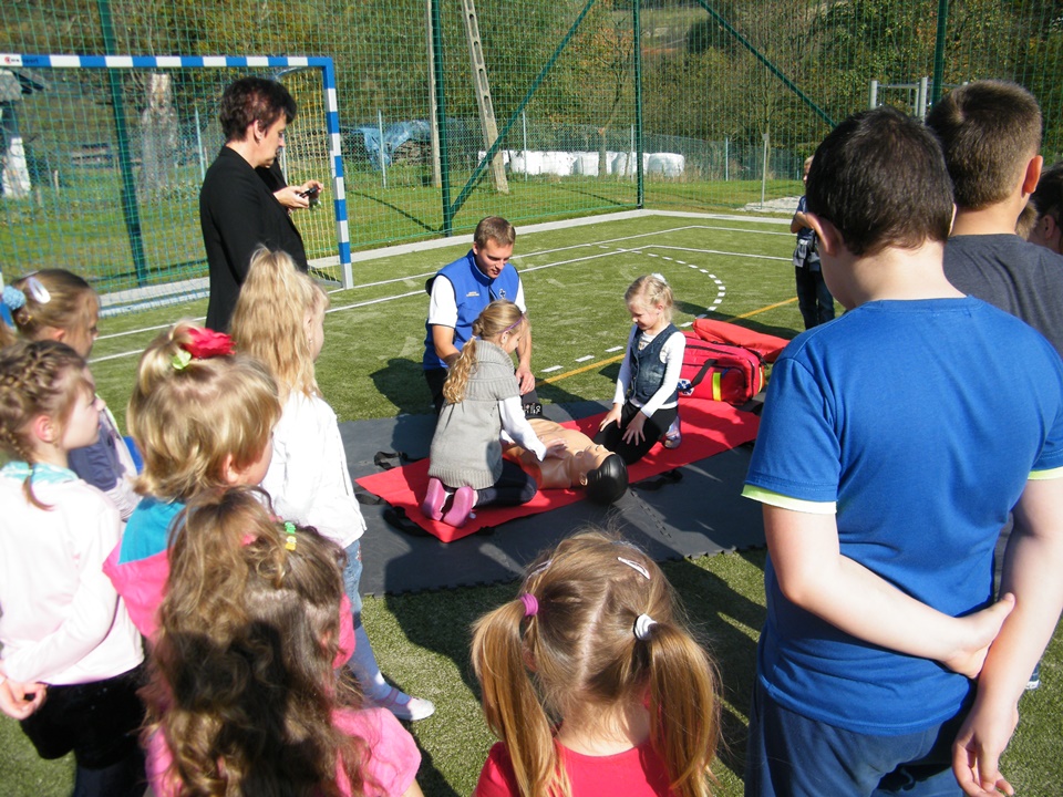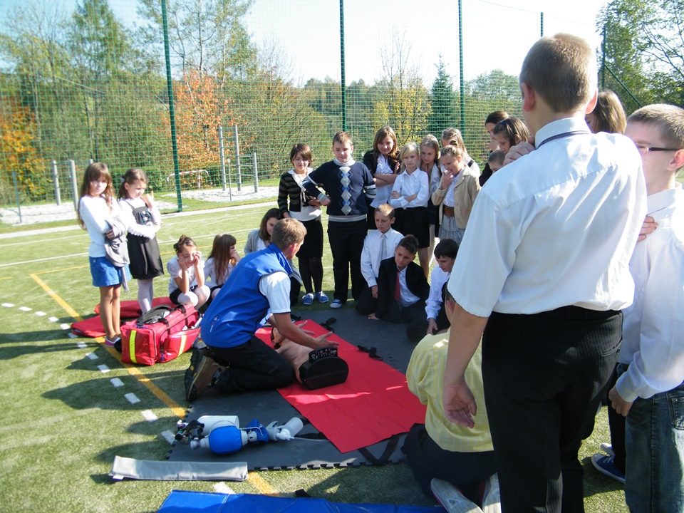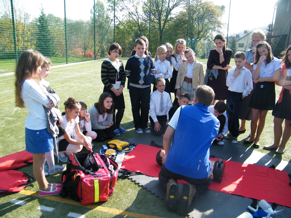 Jastrzębie - pogadanka edukacyjnaW dniu 13.10.2014 r. w Szkole Podstawowej w Jastrzębiu przeprowadzona została pogadanka edukacyjna w ramach projektu "Organizacja kursu kwalifikowanej pierwszej pomocy oraz pogadanek edukacyjnych wraz z zakupem defibrylatora dla społeczności lokalnej".