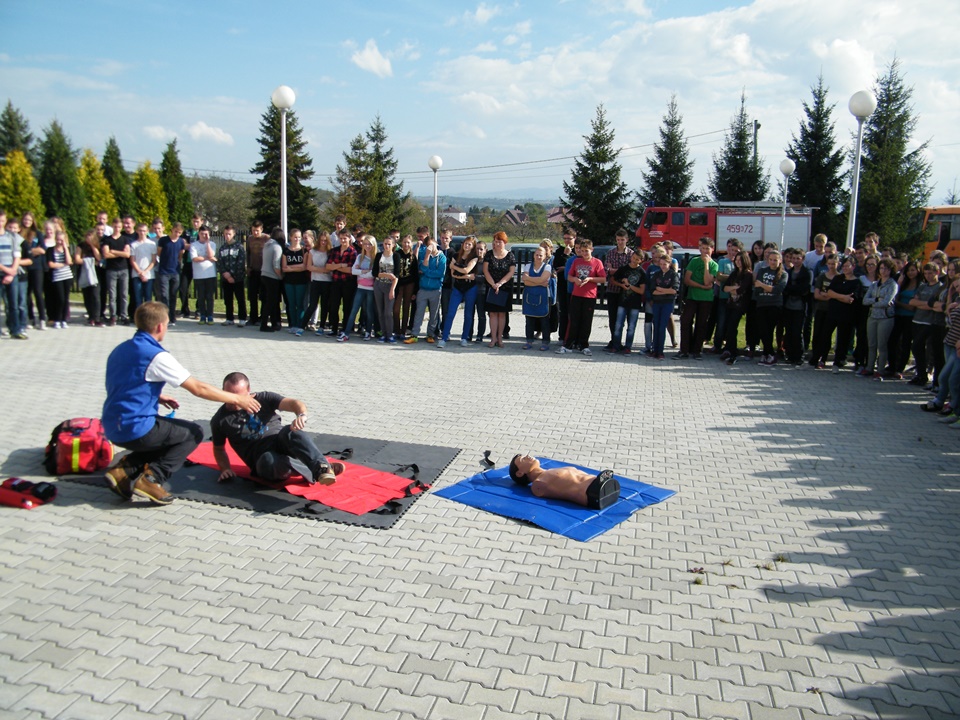 Łukowica - pogadanka edukacyjnaW dniu 13.10.2014 r. w Gimnazjum w Łukowicy przeprowadzona została pogadanka edukacyjna w ramach projektu "Organizacja kursu kwalifikowanej pierwszej pomocy oraz pogadanek edukacyjnych wraz z zakupem defibrylatora dla społeczności lokalnej".