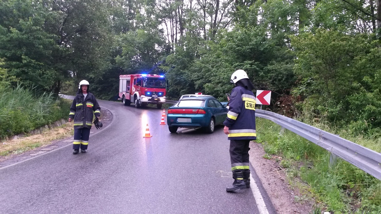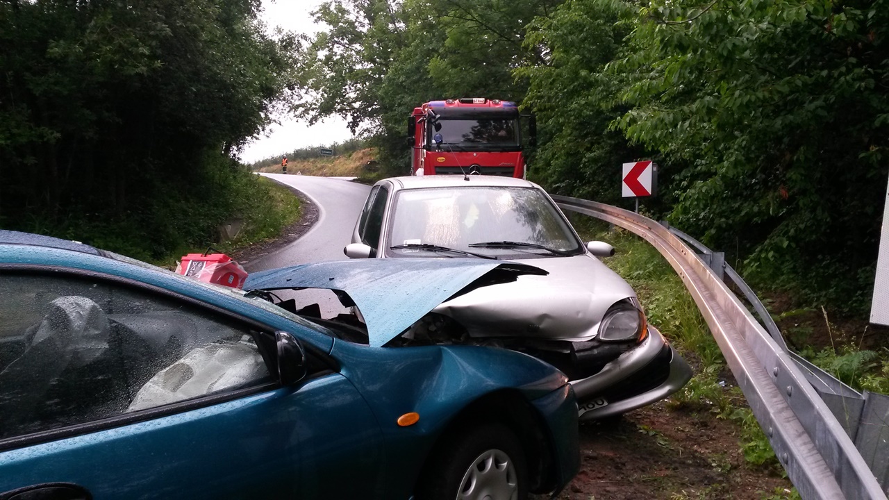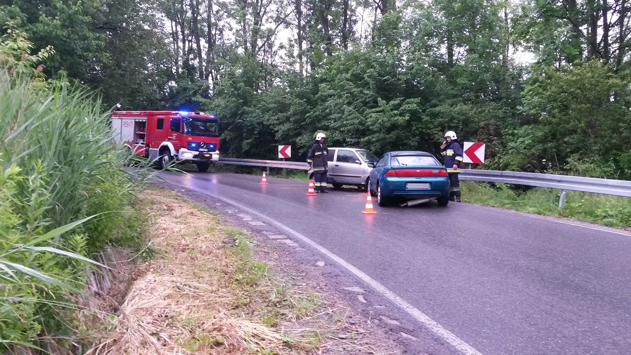 Zderzeniu uległy dwa samochody osobowe. Osobom kierującym pojazdami na szczęście nic poważnego się nie stało. Nasze działania polegały na zabezpieczeniu miejsca zdarzenia, udzieleniu drobnej pomocy medycznej jednej z osób uczestniczącej w zdarzaniu, odłączeniu akumulatorów z uszkodzonych pojazdów oraz zabezpieczeniu wycieków płynów eksploatacyjnych z pojazdów. Na czas działań ruch na drodze odbywał się wahadłowo.