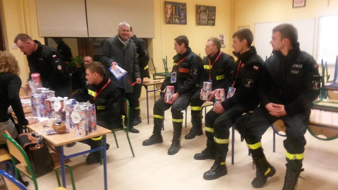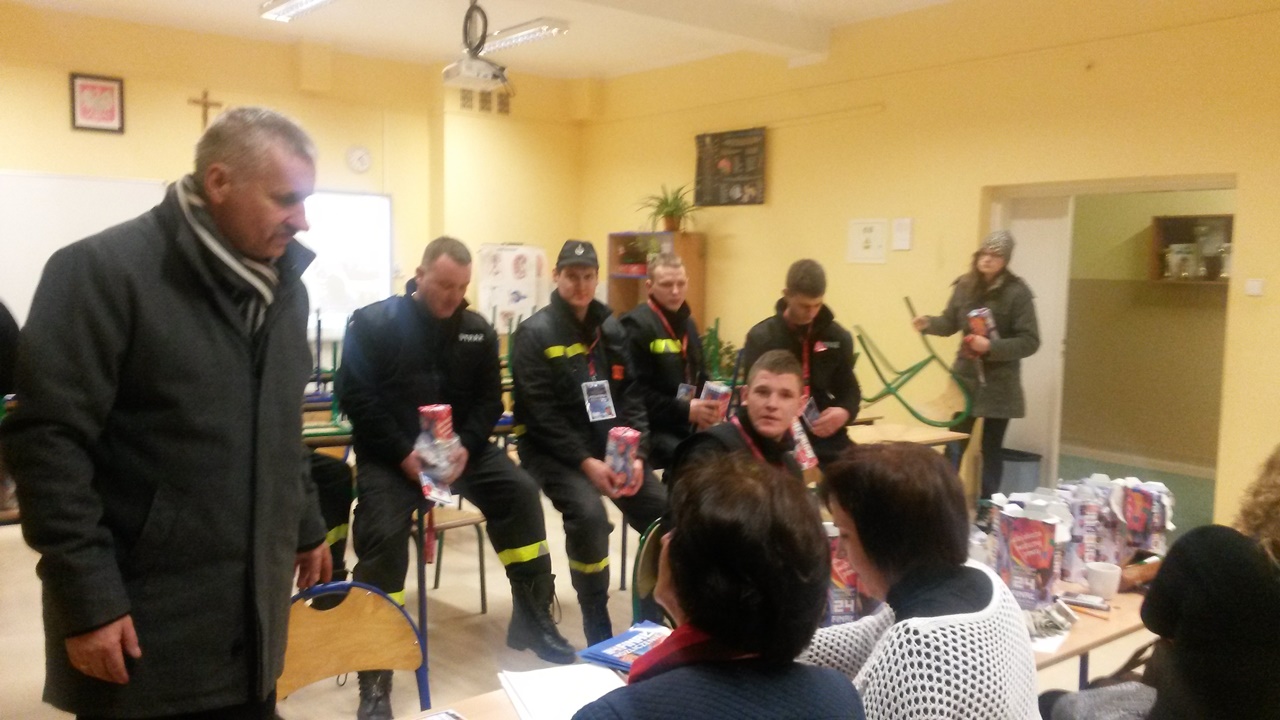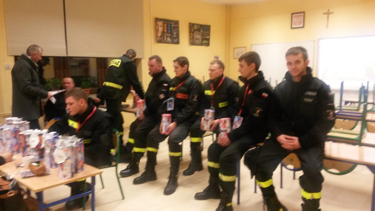 Podziękowania kierujemy również do członków zespołu HAPPYSAD, którzy przekazali koszulki i gadżety promocyjne będące nie lada atrakcją dla zebranych uczestników. Słowa uznania kierujemy również do naszych dwóch strażaków Michała i Adama Sułkowskiego, którym również składamy gorące podziękowania za zaangażowanie i udział w podjętej akcji. Organizacja i przeprowadzenie dzisiejszego wydarzenia nie byłoby możliwe gdyby nie wsparcie naszych strażaków, zarówno tych prowadzących zbiórkę – wolontariuszy WOŚP, jak i tych którzy w jakikolwiek inny sposób brali udział we w tych wydarzeniach – podziękowania kierujemy tutaj przede wszystkim na ręce Prezesa OSP Józefa Pietrzaka.