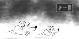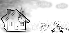 Jeżeli natomiast pożar zaskoczy cię, i jego rozmiar będzie duży, bezzwłocznie skieruj się do wyjścia. Uczyń to przesuwając się do drzwi na czworakach. Uchroni cię to od szkodliwego dymu i wysokiej temperatury, które skupiają się w górnych partiach pomieszczenia. Do twarzy przyłóż zmoczony wodą ręcznik.