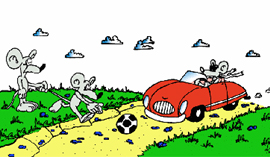 Jeżeli bawisz się zbyt blisko drogi, możesz ulec groźnemu wypadkowi, a jednocześnie możesz być przyczyną wypadku, kiedy kierowca straci panowanie nad kierownicą omijając ciebie wbiegającego na jezdnię za piłką.